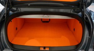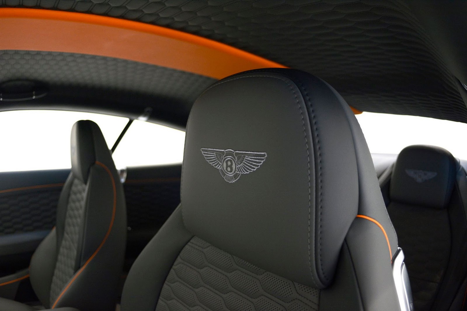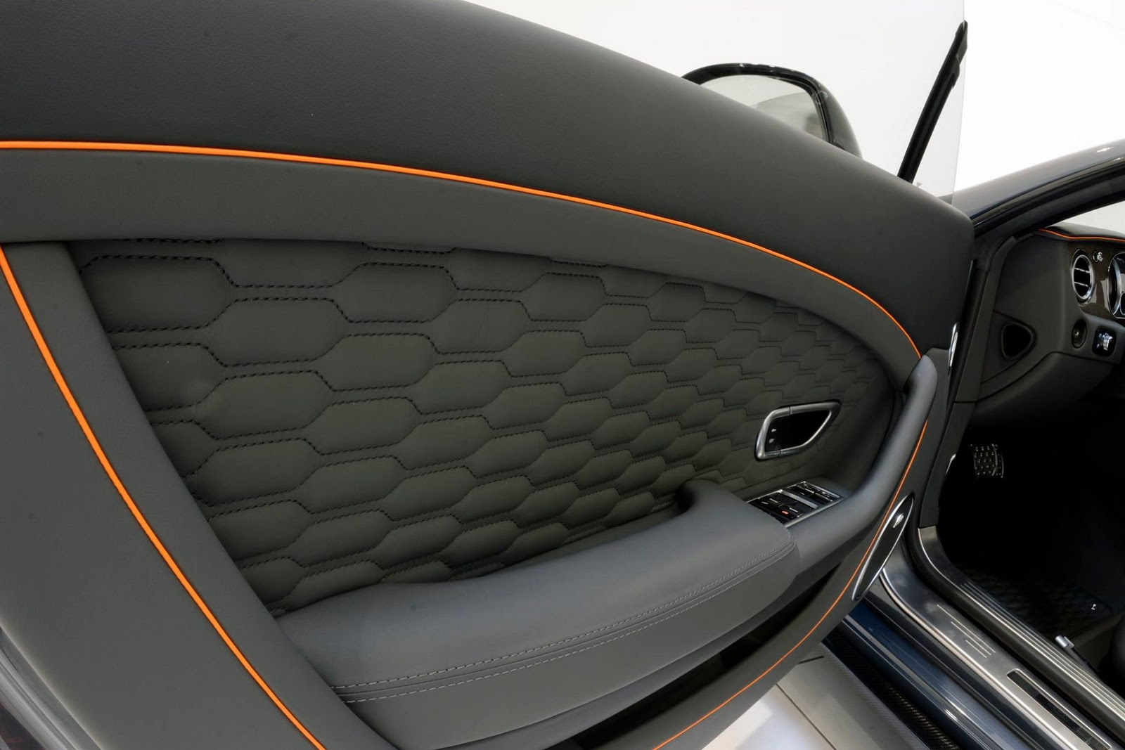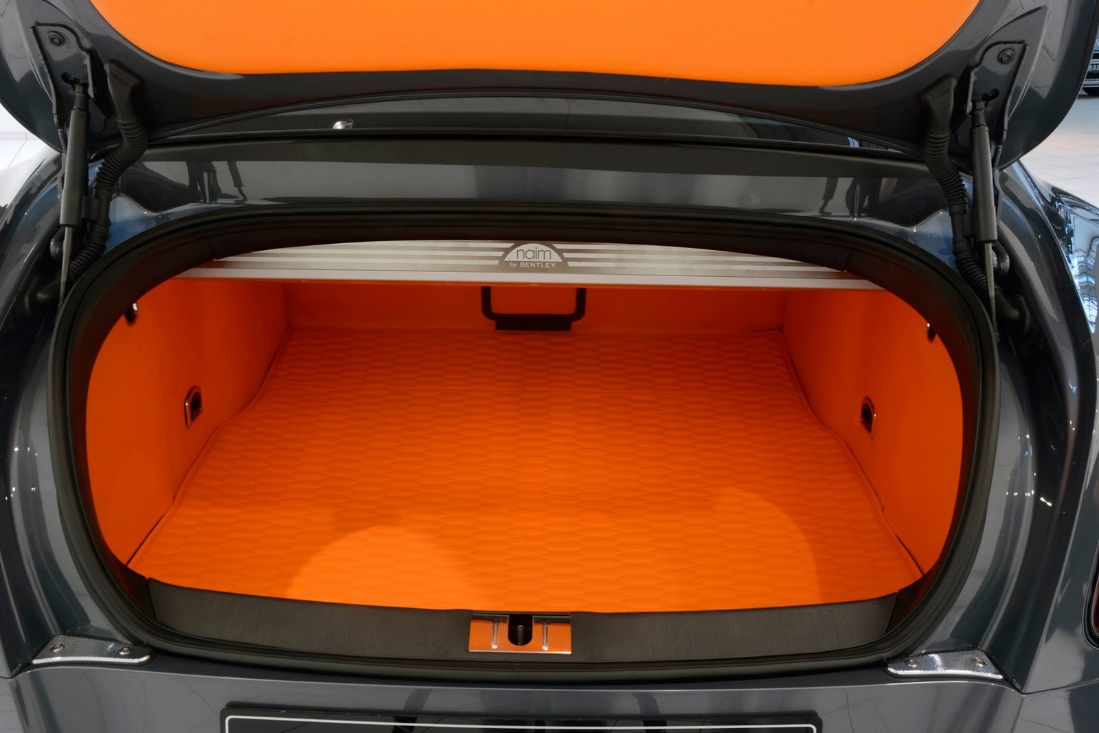 But that’s not all. The entire trunk is orange – even the lining of the trunk lid. Speaking of which, you can also see that this car is equipped with the Naim for Bentley sound system, thought by many to be one of the best in the world.