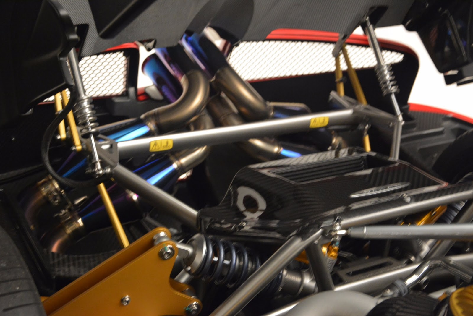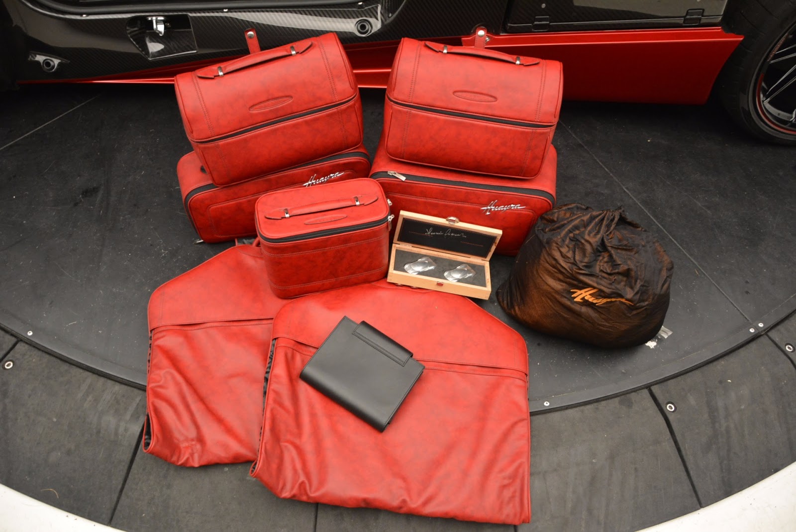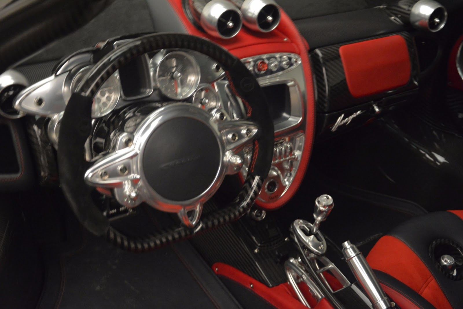 This particular Huayra is number 57 and believed to be one of the first units that reached U.S. soil. It can be easily distinguished from all other cars to leave Pagani’s factory thanks to the combination of red accents and a gloss carbon fiber body.