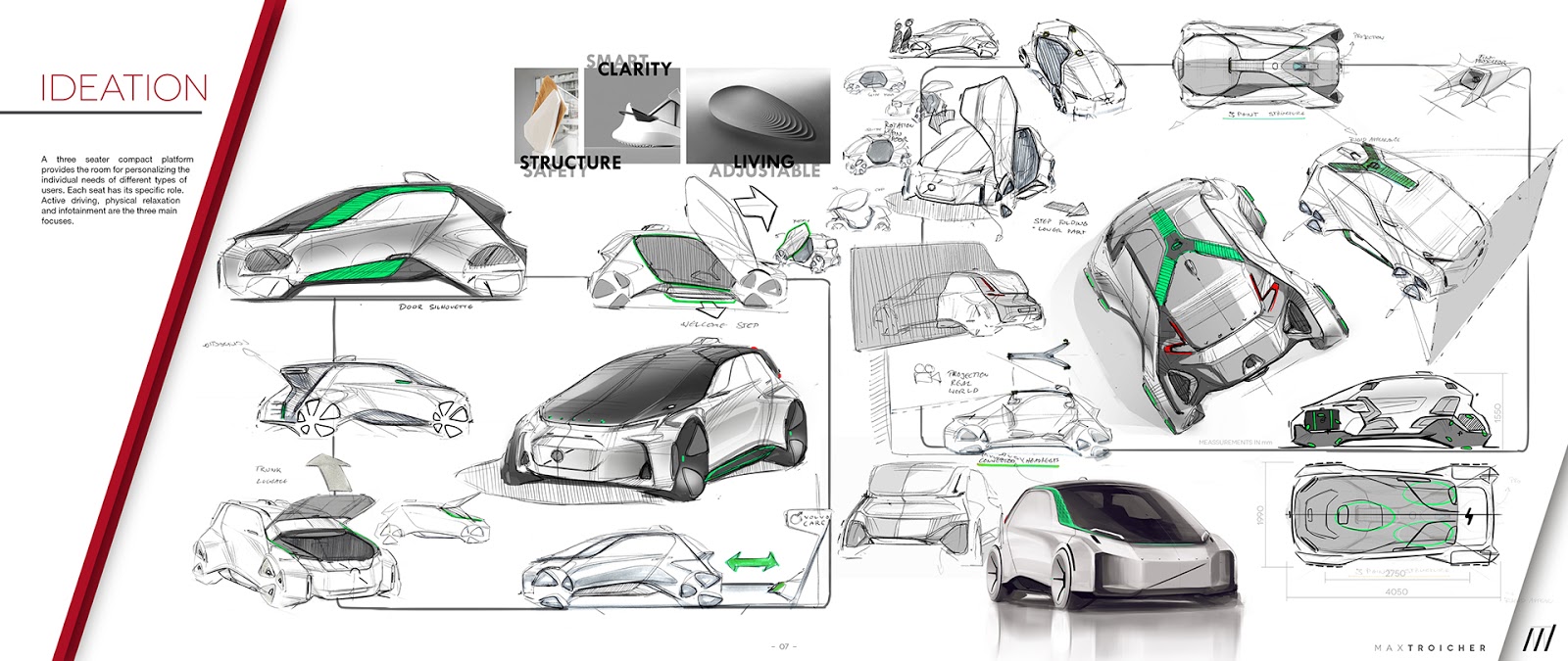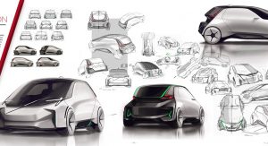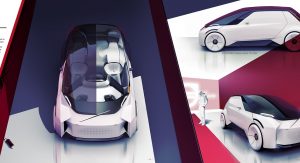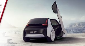 The exterior of the design mimics the vehicle’s caring personality, incorporating a large windscreen that stretches from the roof right to the top of the front bumper.