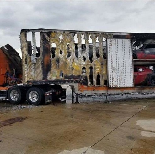 Three Dodge Challenger Demons have been burnt to a crisp after a delivery truck caught fire in Michigan.