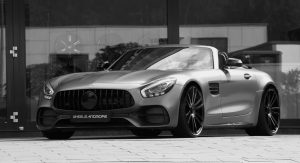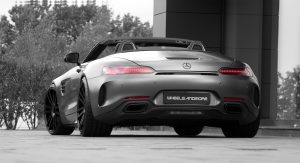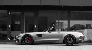 Making this Mercedes-AMG GT C Roadster appear even more dramatic are the satin black finish, and height-adjustable springs, which can be replaced with a coilover suspension made by KW for enhanced track performance.