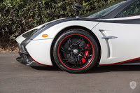 The exterior of the Italian hypercar is a mixture of white paint, gloss carbon fiber and bright red accents, really making it look like a road-going Transformer. As with any other Huayra, the exterior is beautifully matched by an equally sexy interior covered in a mixture of red leather, carbon fiber and aluminum.