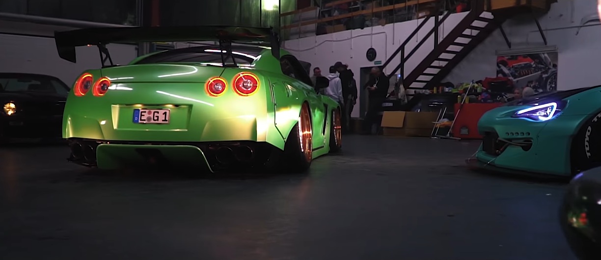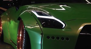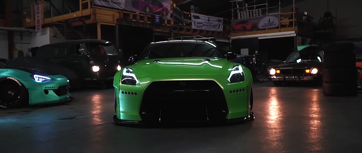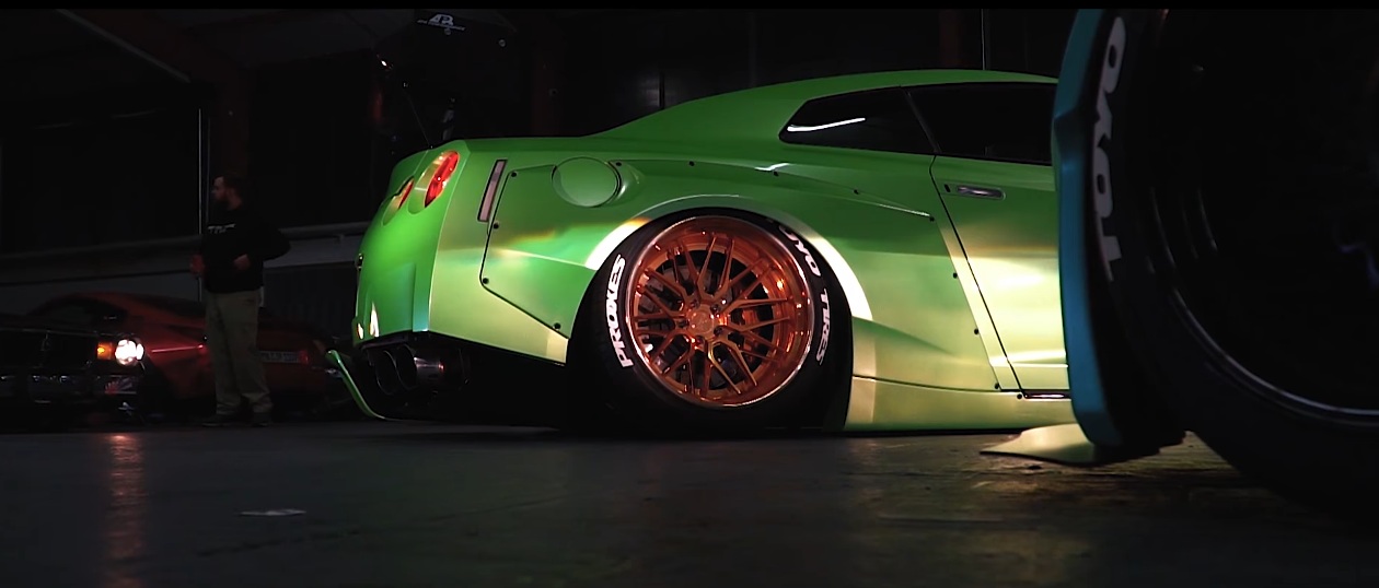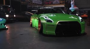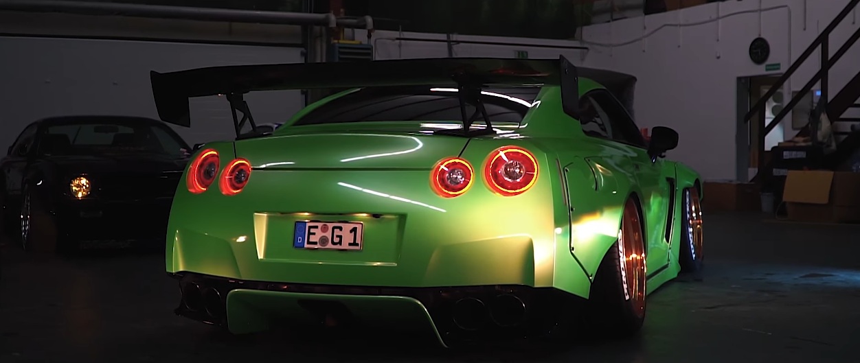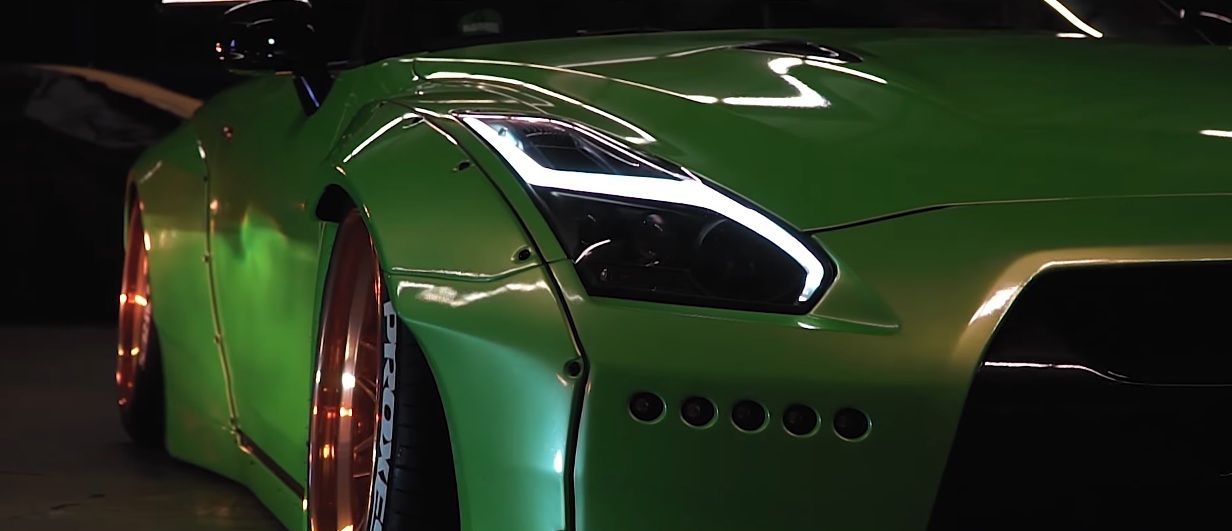 As it currently sits, this tuned Nissan GT-R could definitely audition for the new ‘Fast and Furious‘ movie thanks to its extreme body kit with extra wide fenders, gigantic rear wing, ground-hugging suspension and, of course, that non-too-subtle green paint and golden wheels.