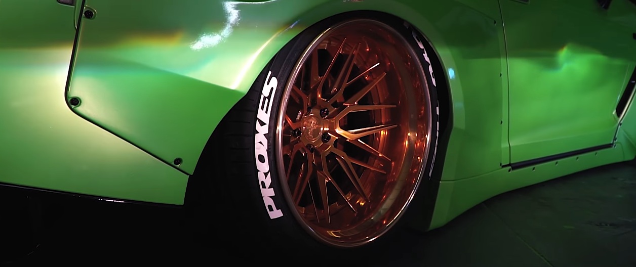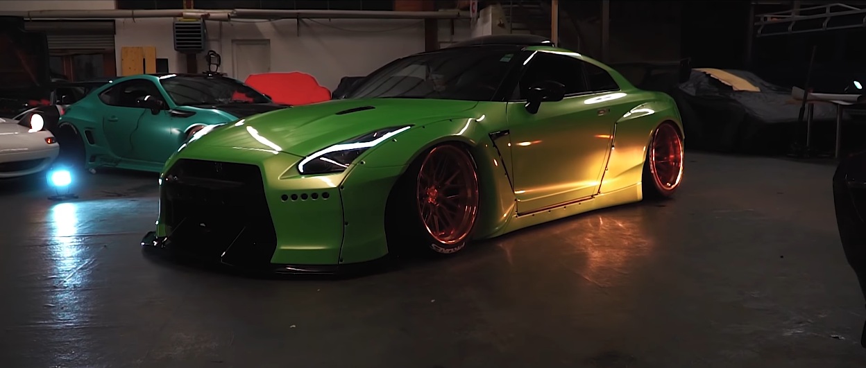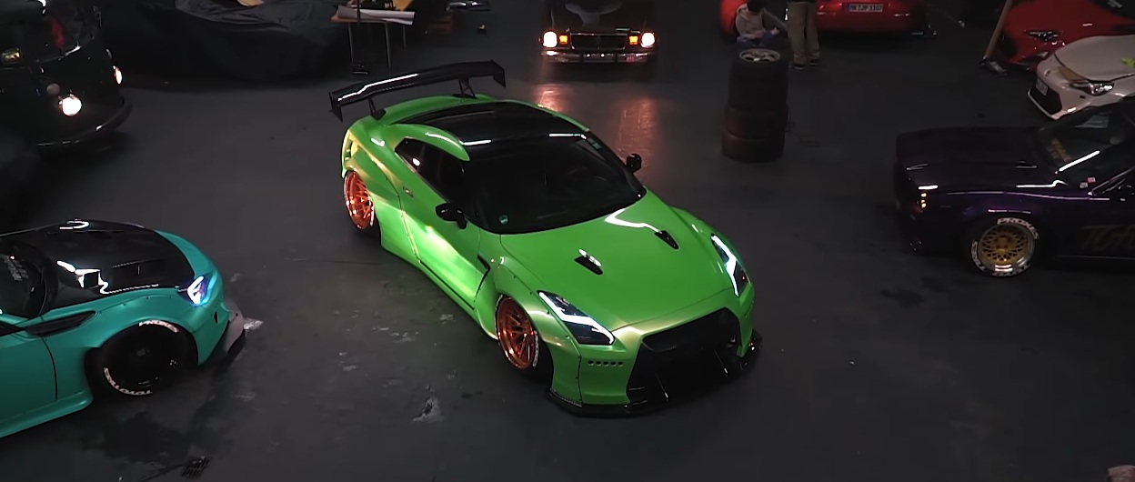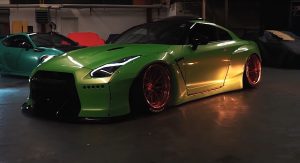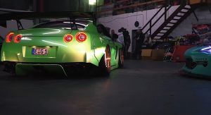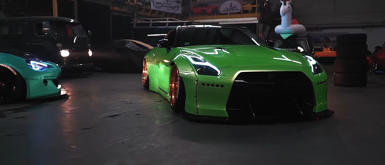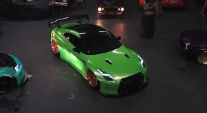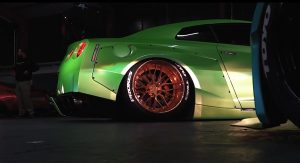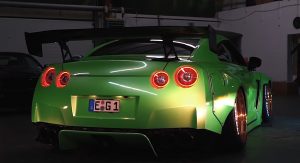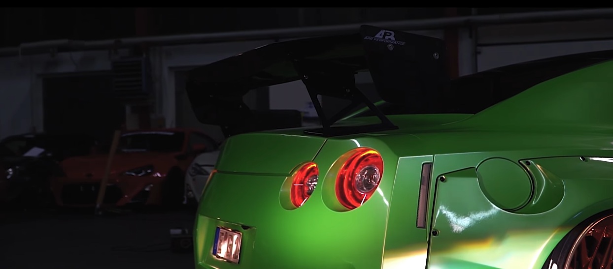 As it currently sits, this tuned Nissan GT-R could definitely audition for the new ‘Fast and Furious‘ movie thanks to its extreme body kit with extra wide fenders, gigantic rear wing, ground-hugging suspension and, of course, that non-too-subtle green paint and golden wheels.