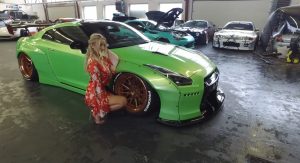 So, once again, say hello to Mareike Fox, a 26-year old German adult movie star with a passion for fast cars, whose Nissan GT-R used to carry a Prior Design widebody kit until not that long ago. Apparently, the young woman wanted a bit more for her Japanese supercar, so she turned to Tofu Garage in Germany to have it fitted with a Pandem Rocket Bunny V2 aerokit, which seems to have a thing or two in common with Liberty Walk’s flashy creations.