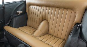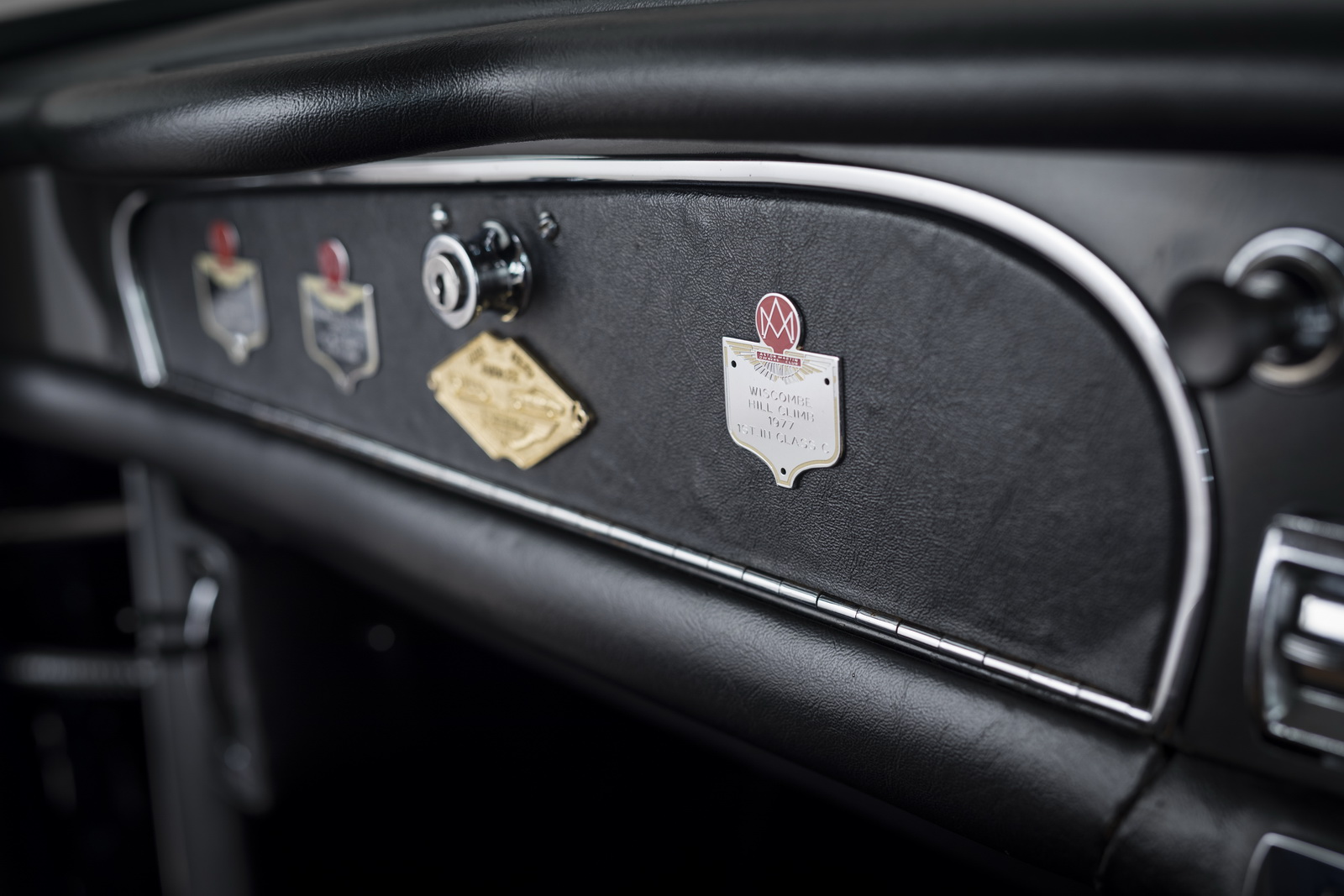It was originally Aston Martin’s London demonstrator and comes with a range of upgrades, including a triple Weber setup, a five-speed gearbox and modded front and rear wheel arches in order to fit its larger offset wire wheels.