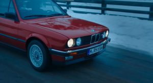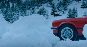 The commercial shows a mother and her daughter making the final preparations for Christmas, while the father is coming home with the tree in the M3 pickup’s bed. Apparently, he enjoyed powersliding on the snow-filled roads and had so much fun, he forgot about the Christmas tree at the back and, by the time he got home, it was ruined, much to the dismay of his family.