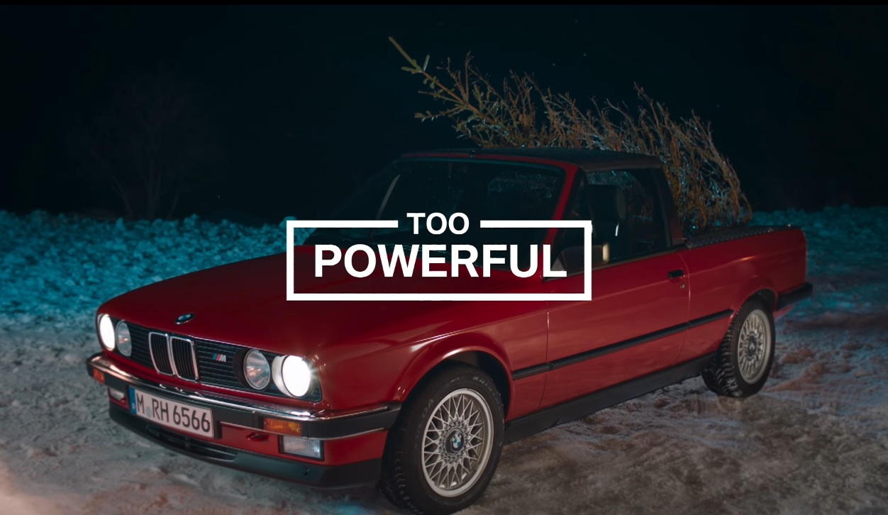 The commercial shows a mother and her daughter making the final preparations for Christmas, while the father is coming home with the tree in the M3 pickup’s bed. Apparently, he enjoyed powersliding on the snow-filled roads and had so much fun, he forgot about the Christmas tree at the back and, by the time he got home, it was ruined, much to the dismay of his family.