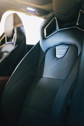 The styling changes continue in the cabin as drivers with find Jet Black Recaro leather seats with suede inserts and red contrast stitching. The model also has red armrests, carbon fiber trim, and a sueded microfiber steering wheel.