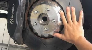 In addition to this titbit of information, another member managed to snap a picture of the vehicle’s truly massive Brembo brakes and slotted calipers which will have to deal with bringing the hugely-powerful car to a stop.