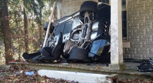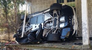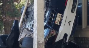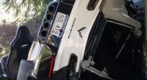 From the images posted on Facebook by Thomas Minnear, we can see that the Arctic White Corvette Z06, which appears to have been equipped with the Z07 Performance Package, rests sideways on the front porch of a house, in West Virginia.