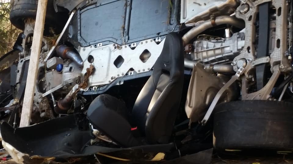There are more damages than we can count, from the passenger seat that was ripped off and thrown out, to a completely ruined front end. Various bits of this Vette, including the alternator and a wheel, together with the brake disc and caliper, were lying around in the vicinity, which shows just how violent the impact was.