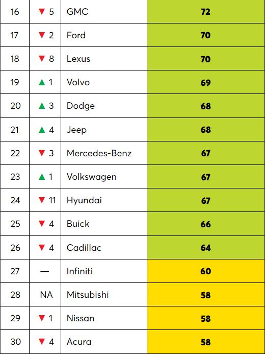 Worth noting is that Alfa Romeo, Jaguar, Land Rover, Maserati, Smart and Fiat weren’t included in the chart, because of insufficient data. Last year, Fiat was ranked dead last.