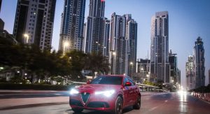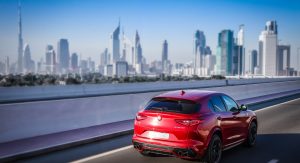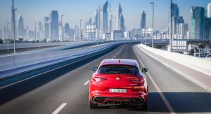 At its heart lies a 2.9-liter V6 engine shared with the Giulia Quadrifoglio, which delivers 505hp (512PS) and 443lb-ft (600Nm) of torque to the Q4 all-wheel drive system through an 8-speed automatic transmission. The Ferrari-derived powertrain and all of its mods allow it to cover the 0-60mph (96km/h) acceleration in 3.9sec and reach a top speed of 177mph (284km/h).