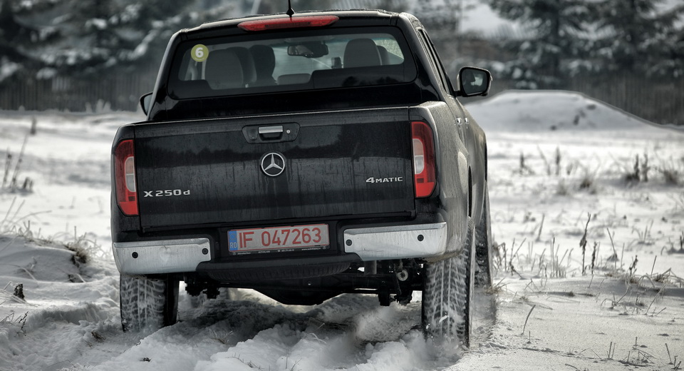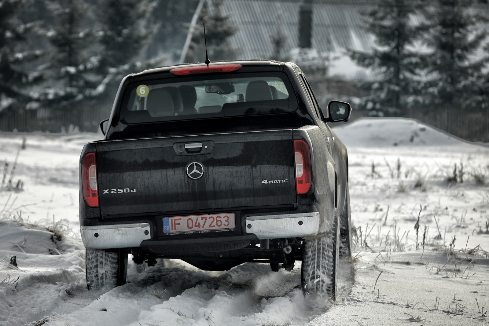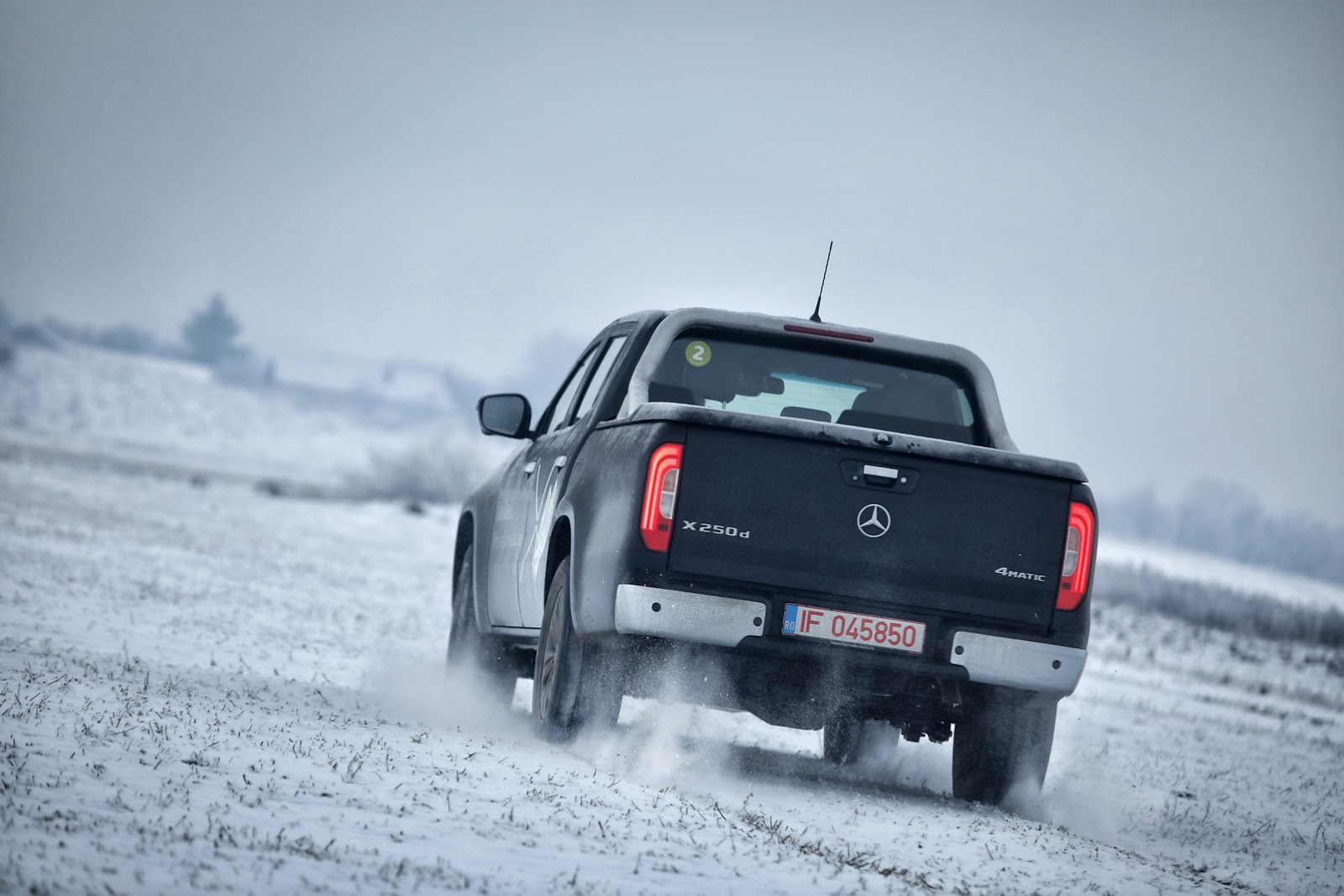 We didn’t do any serious off-roading with the X-Class, but we did tackle plenty of snowy and rough surfaces that would normally make a regular family crossover struggle to make it through. The X-Class handled itself with poise and felt sturdy regardless of what the course threw at it. The ride was also smoother than in most, if not all, other mid-size pickup trucks I’ve driven.