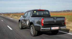 Like its rivals such as the VW Amarok or the Ford Ranger, the X-Class is a heavy vehicle, weighing over 2.2 tons (4,850 lbs) if you add the 4MATIC all-wheel drive system. That makes it heavier than a GLE, which generally carries well over 200 horses.