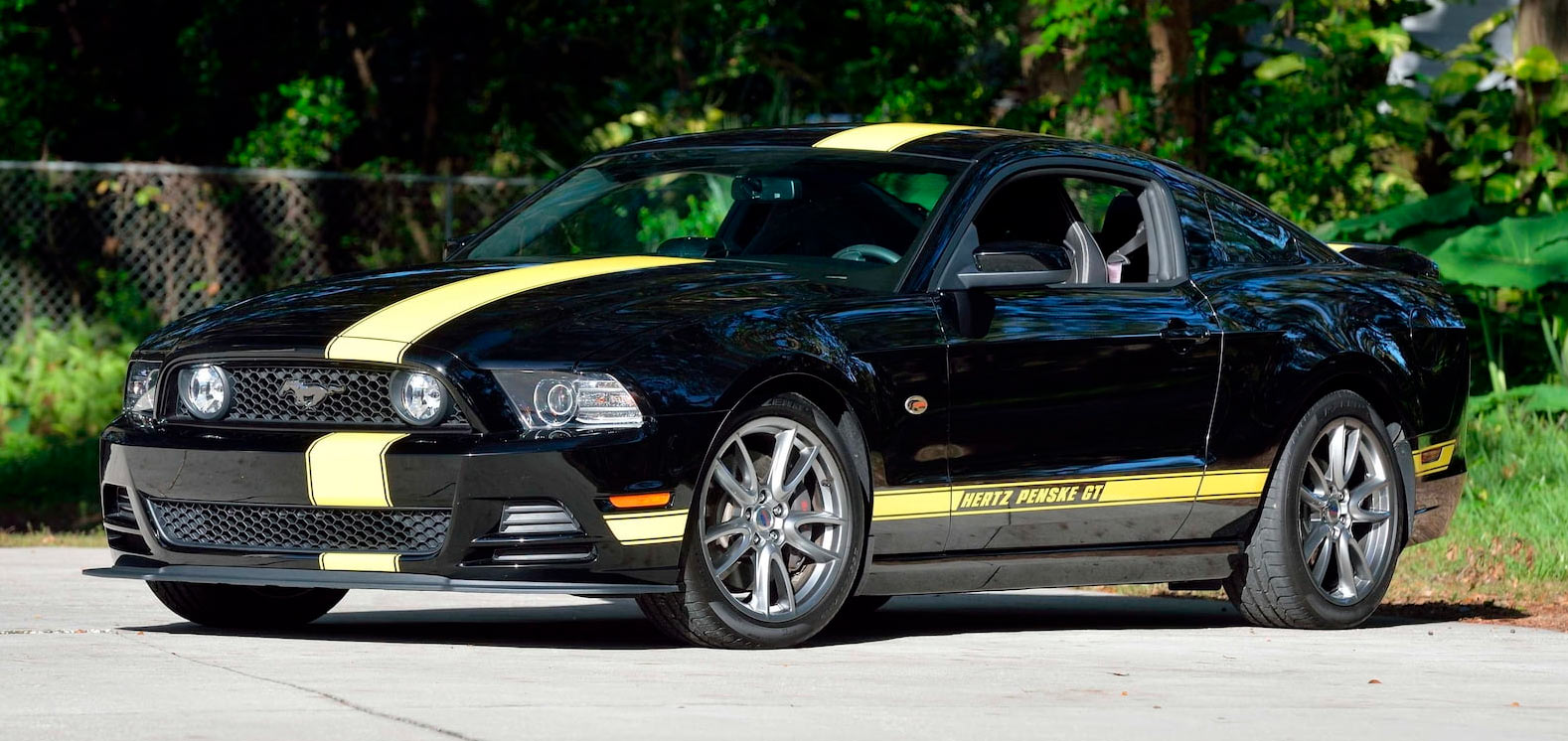 Fans of older Mustangs can bid on the 2014 Hertz-Penske GT which was created for Hertz executives. A 5.0-liter V8 engine resides under the hood and produces 420 hp (313 kW). The car also has a six-speed manual transmission, a Ford Racing suspension, and Recaro leather racing seats. The Mustang is expected to sell for between $65,000 and $85,000.