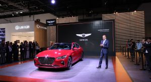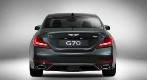 Thus, the G70’s lineup will consist of two turbocharged gasoline engines: a 2.0-liter unit rated at 252 PS (248 HP) and 353 Nm (260 lb-ft) of torque, and a 3.3-liter V6 with 370 PS (365 HP) and 510 Nm (376 lb-ft). The V6 variant helps the G70 Sport sprint to 100 km/h (62 mph) in just 4.7 seconds and reach a top speed of 270 km/h (168 mph).