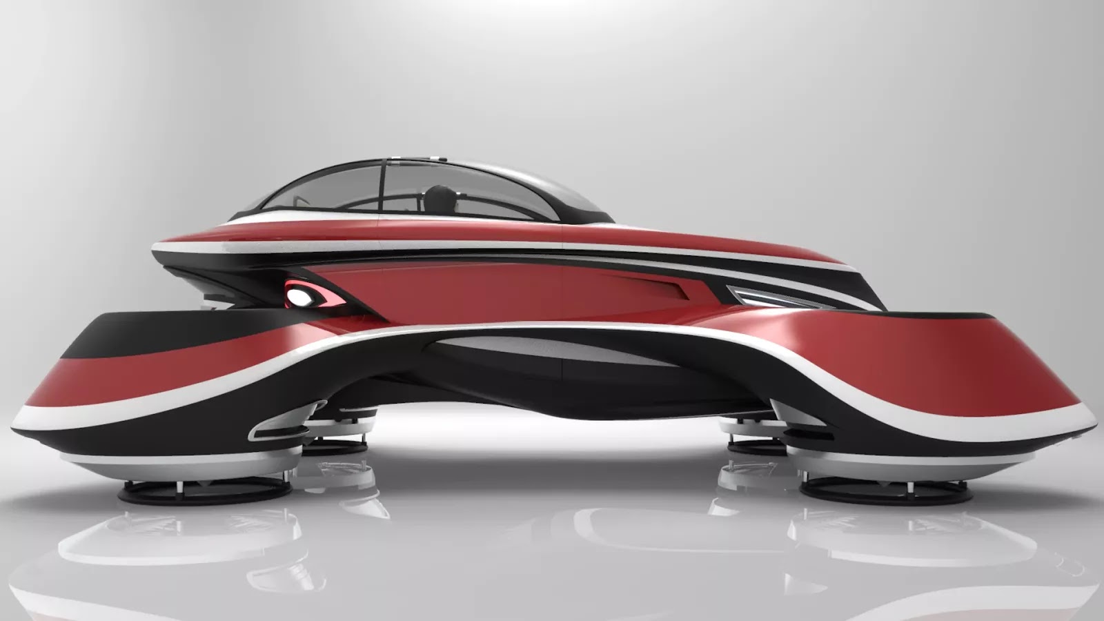 Unlike most flying cars, the Lazzarini doesn’t actually feature wheels. Instead, it can be used as a hovercraft when the owner wants to explore the world from ground level. To ensure the flying car is up to the rigours of everyday use, it would be constructed from light and strong carbon fiber.