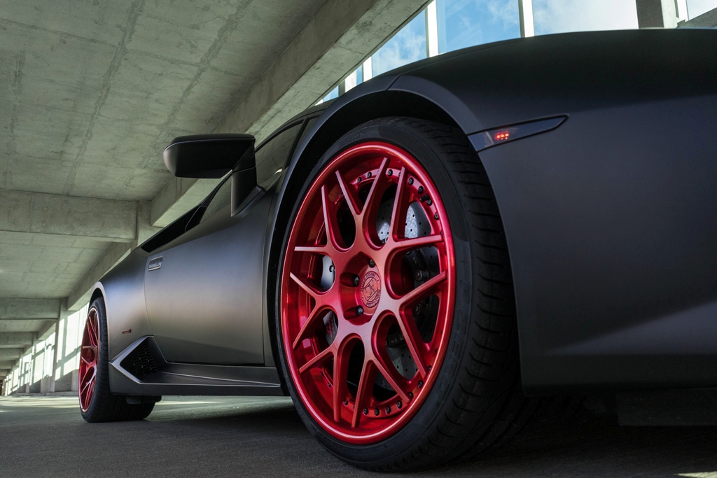 The market is filled with all sorts of aftermarket wheels for the “baby Lambo”, from PUR’s angular ones to HRE’s concave set.