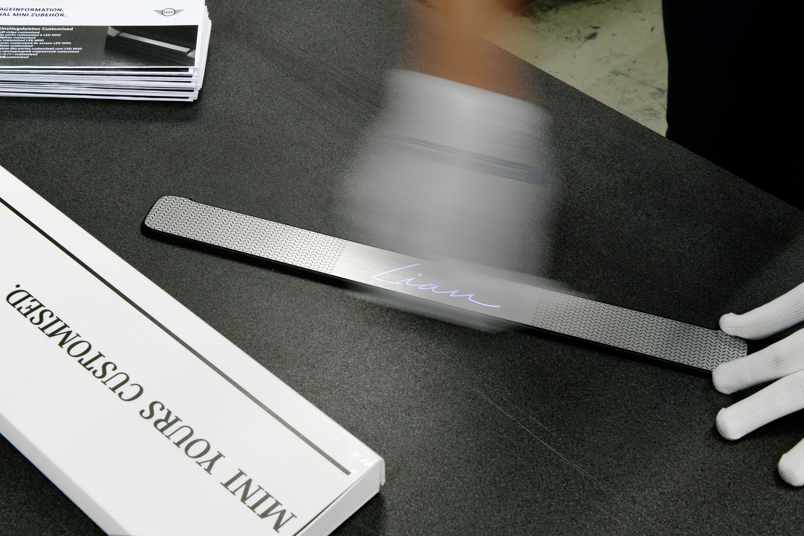 Another exterior option involves the door projectors which can be modified to include special patterns or even the owner’s signature. The interior hasn’t been overlooked either as the service allows users to create customized illuminated door sill plates and bespoke trim for the passenger side dashboard.