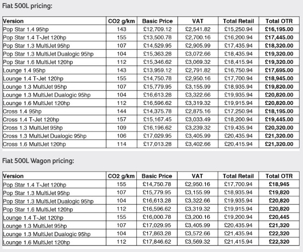 Pricing for the new Fiat 500L in the UK kick off at £16,195 for the entry-level 95hp petrol version.
