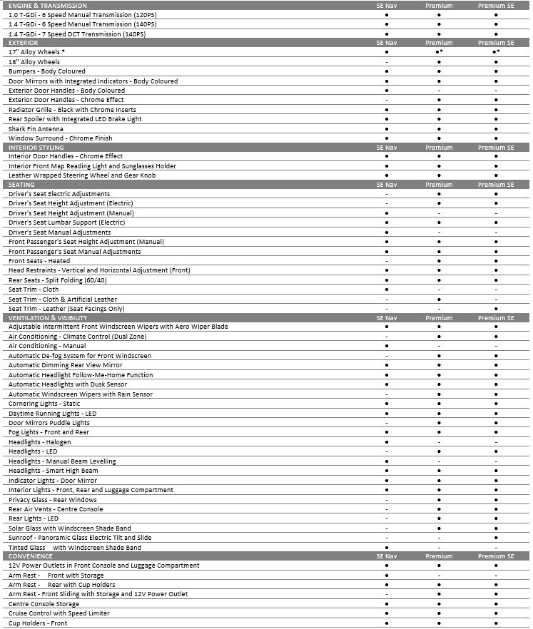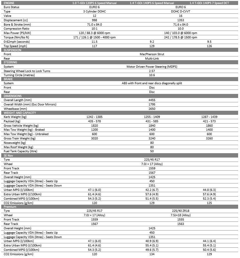 Customers will also have to choose from one of two engines: 1.0-liter T-GDi with 120PS (118hp) and a 1.4-liter GDi rated at 140PS (138hp). The former comes exclusively with a 6-speed manual gearbox, whereas the latter is mated to either a 6-speed manual or a 7-speed DCT.