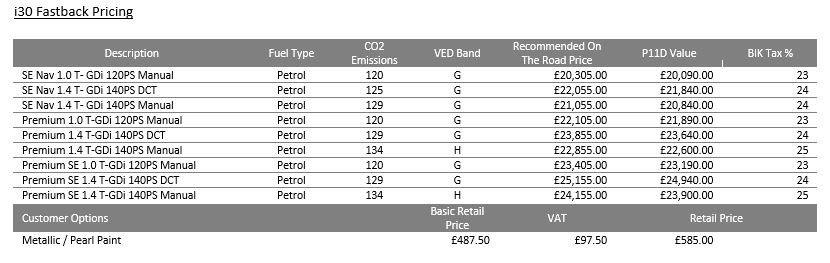 Finally, the 2018 i30 Fastback Premium SE starts at £23,405 ($31,455) and a adds panoramic sunroof and heated steering wheel, in addition to other features.
