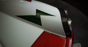 Elsewhere, we notice the Italian flags applied to different parts of the exterior, including the brake calipers, whereas the bespoke interior has chequered brown leather that’s said to have been hand-crafted by an artisan in Turin. The cabin also features exposed aluminum anodized in bronze and carbon fiber trim that keep the theme going.