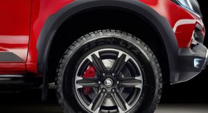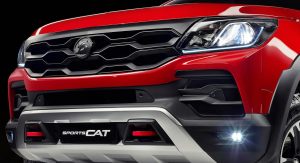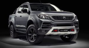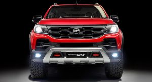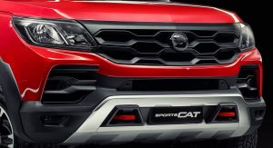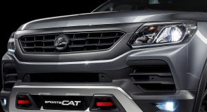 While those figures aren’t mind-blowing, the exterior design of the SportsCat is. Available in SportsCat and SportsCat+ guises, the pickup benefits from a custom blacked-out front grille and air intakes, LED fog lamps, flared fenders, twin tow hooks, tonneau cover, fender graphics, and matte black 18-inch wheels. Elements unique to the SportsCar+ include a honeycomb grille, hood bulge, and machined faces on the wheels.