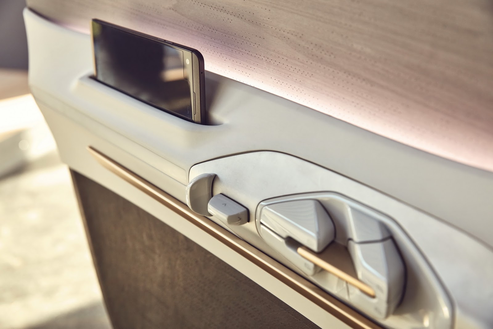 Inside, there is no center console and the air vent system has been designed to achieve a flat floor. Meanwhile, storage areas in the dashboard have been moved to free up space on the sides and the door panels have been optimized with built-in lighting.
