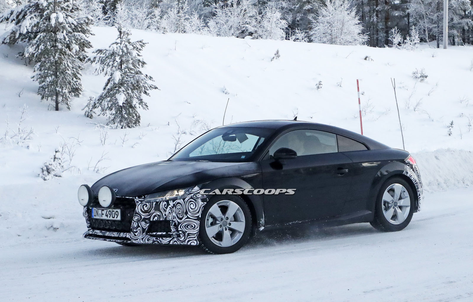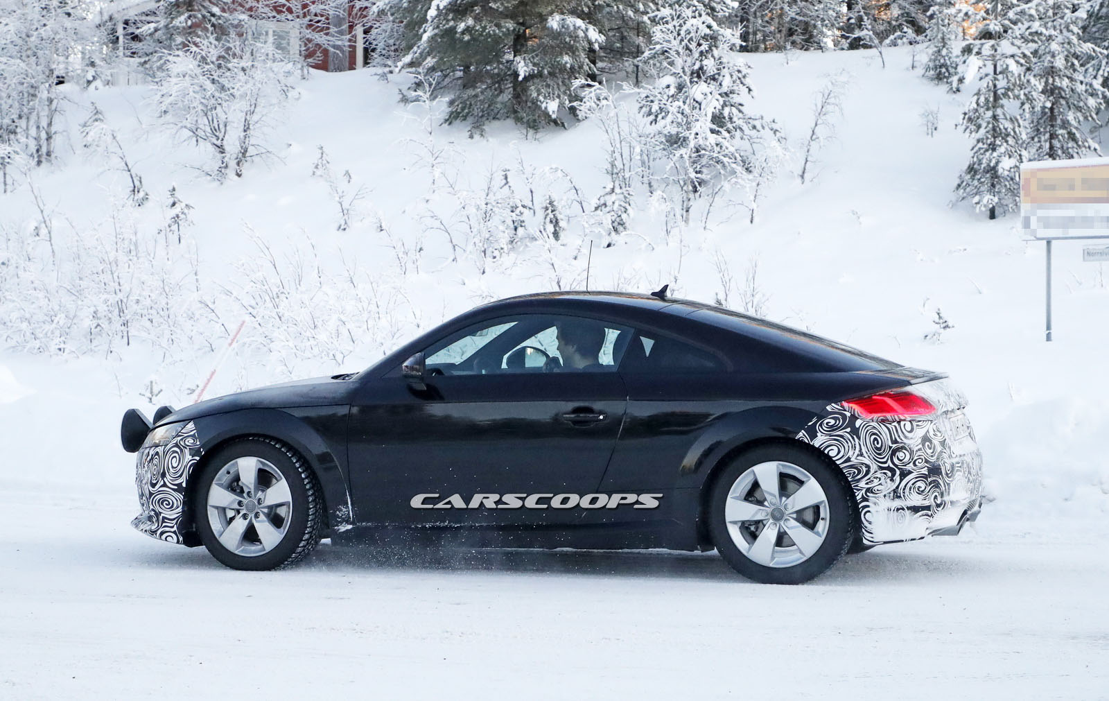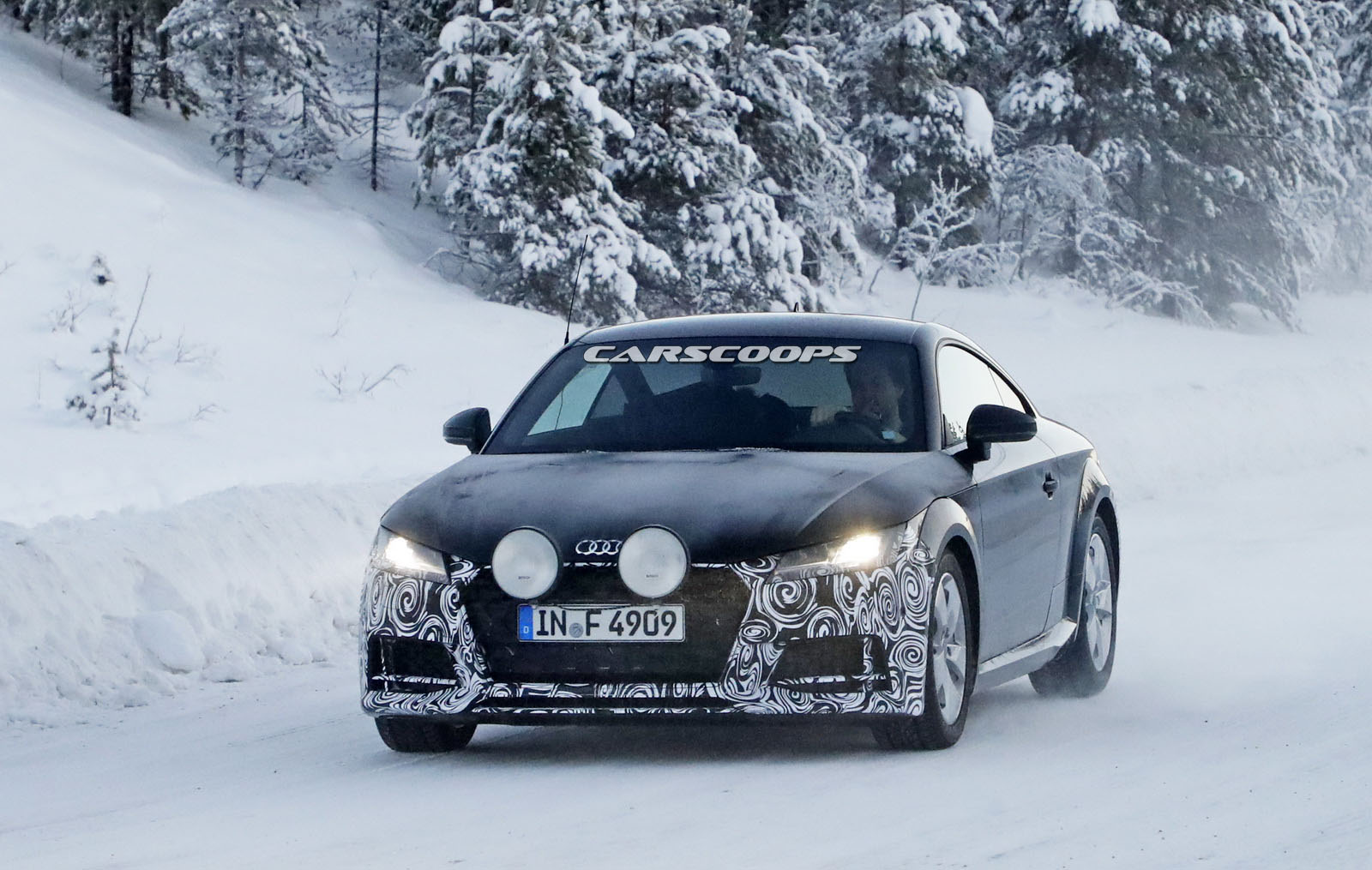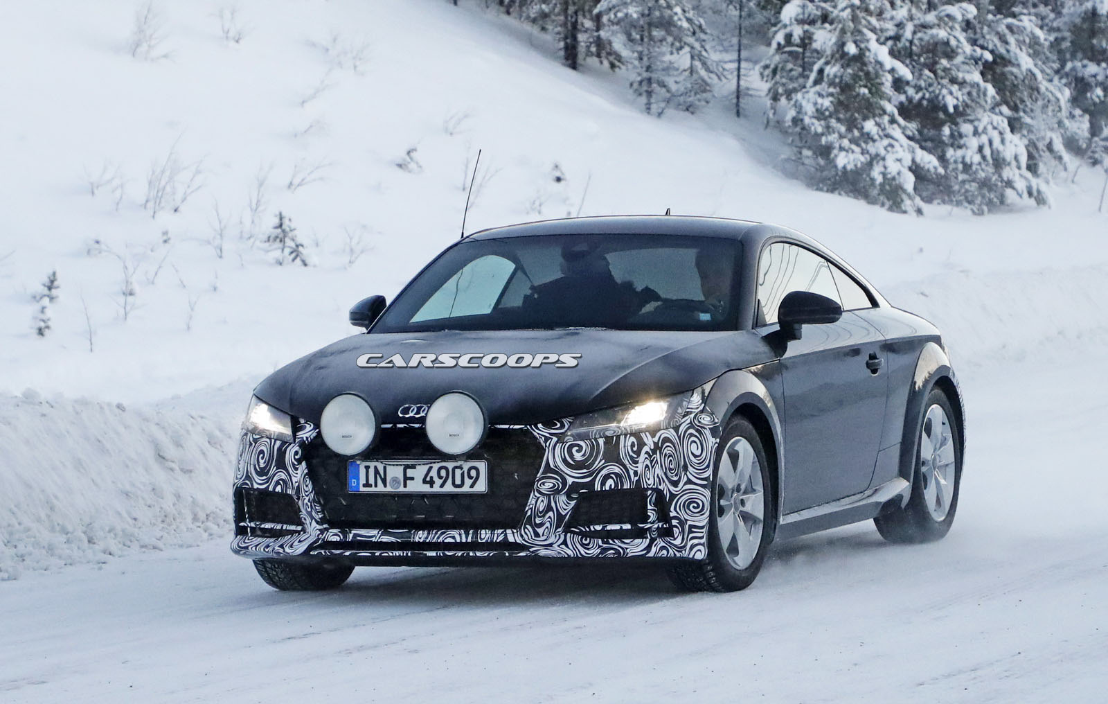 Following our previous scoop on the facelifted TT RS, our spies caught a regular TT prototype being tested in cold-weather conditions, wearing the traditional pair of projector lights.