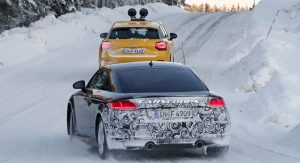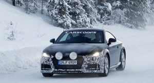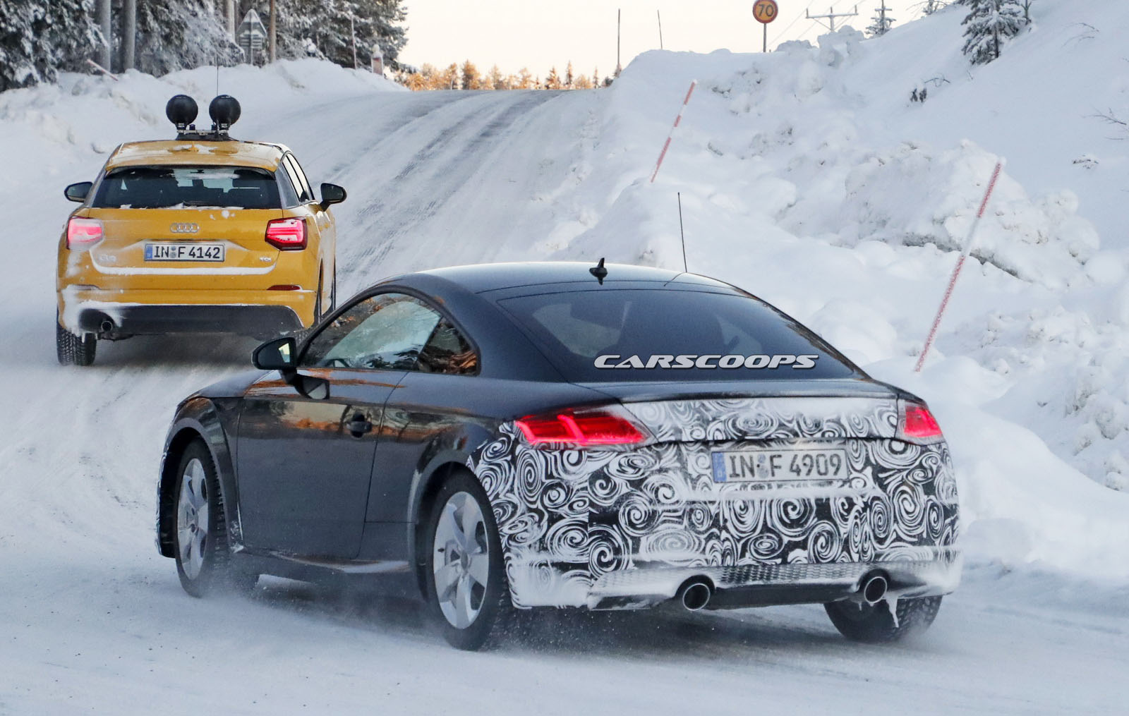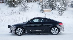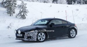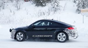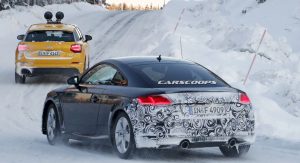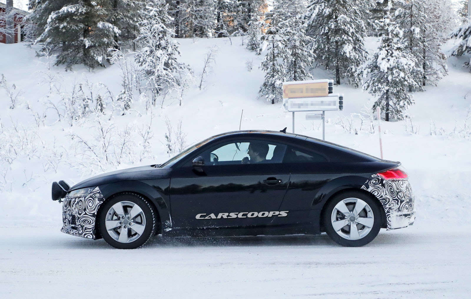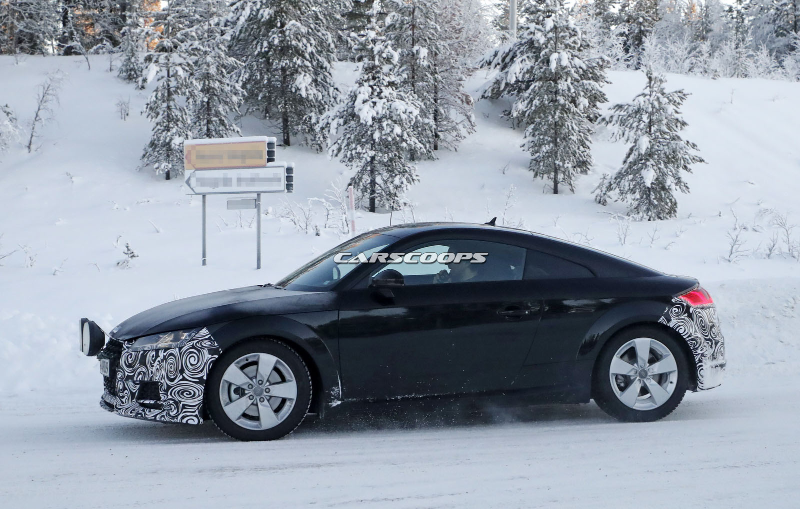 Following our previous scoop on the facelifted TT RS, our spies caught a regular TT prototype being tested in cold-weather conditions, wearing the traditional pair of projector lights.