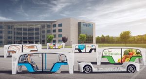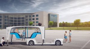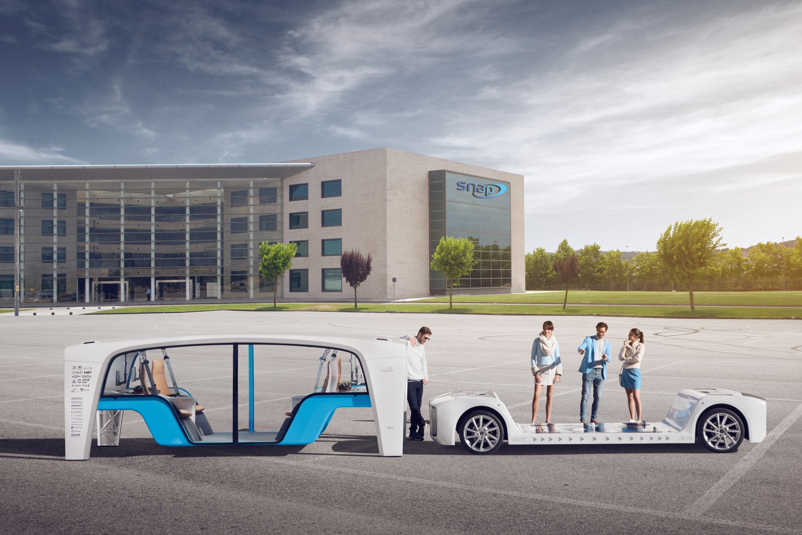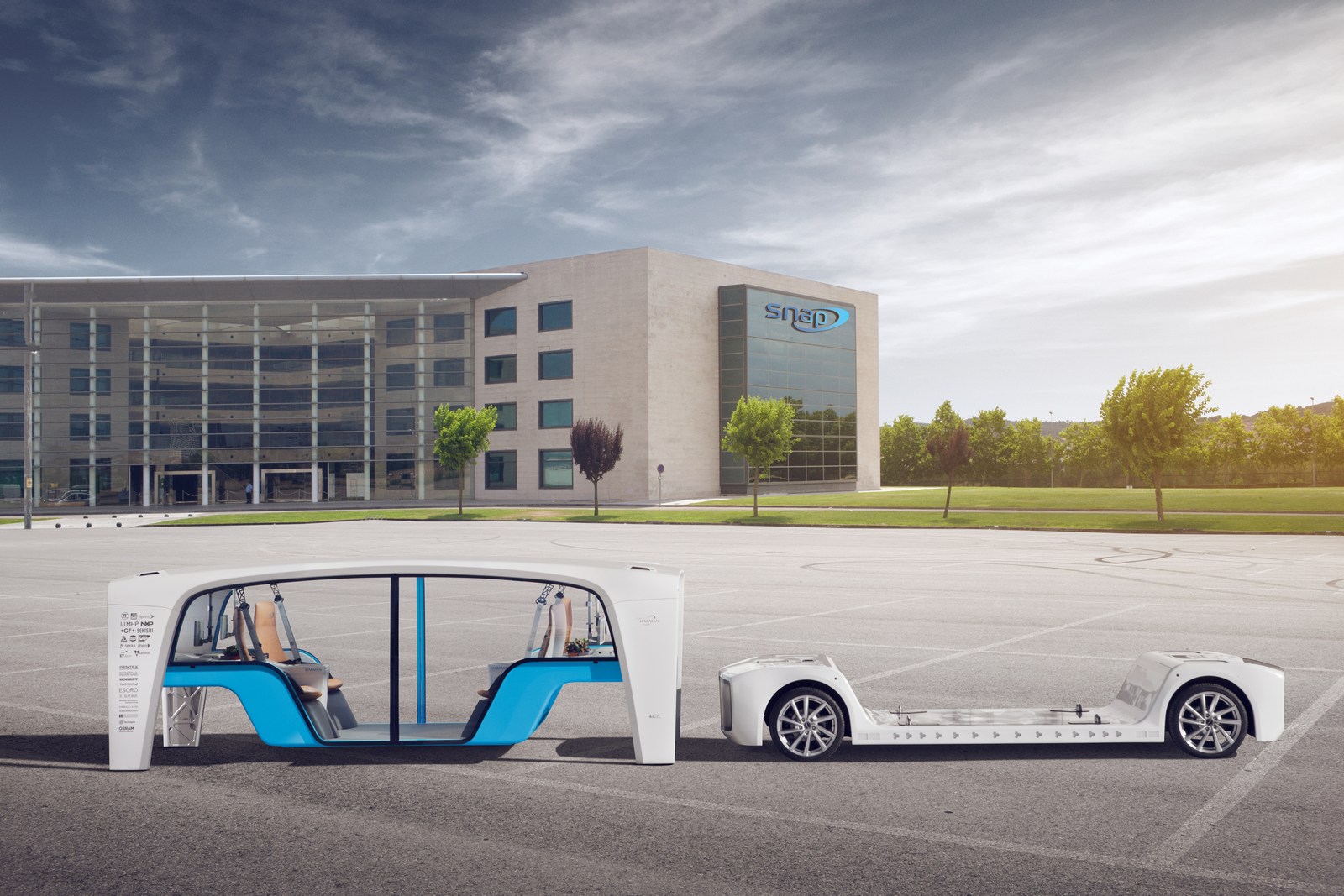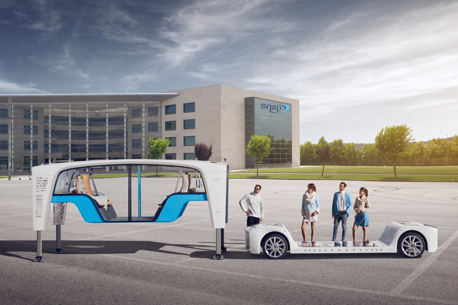 Essentially a skateboard chassis which can house and assortment of different pods, the Snap is a fully-autonomous electric vehicle which has been equipped with WiFi and 5G connectivity as well as six projectors that can display information to pedestrians and passing motorists.