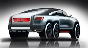 The vision of a designer from India who goes only by the handle Vivek, this concept envisions an extreme Rolls-Royce off-roader with three axles.
