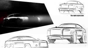 The finished product will have four driven wheels on two axles – not six on three. And it’ll have a more conventional wagon roofline, not a sloping fastback like the BMW X6 and all those that have followed. But the details and design cues, from the upright Pantheon grille to the suicide rear doors, look right in step with what the British luxury automaker would cook up itself.