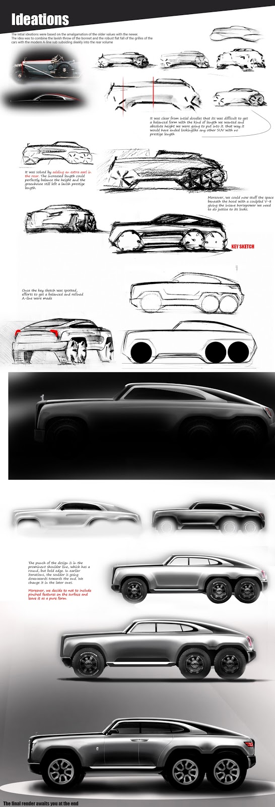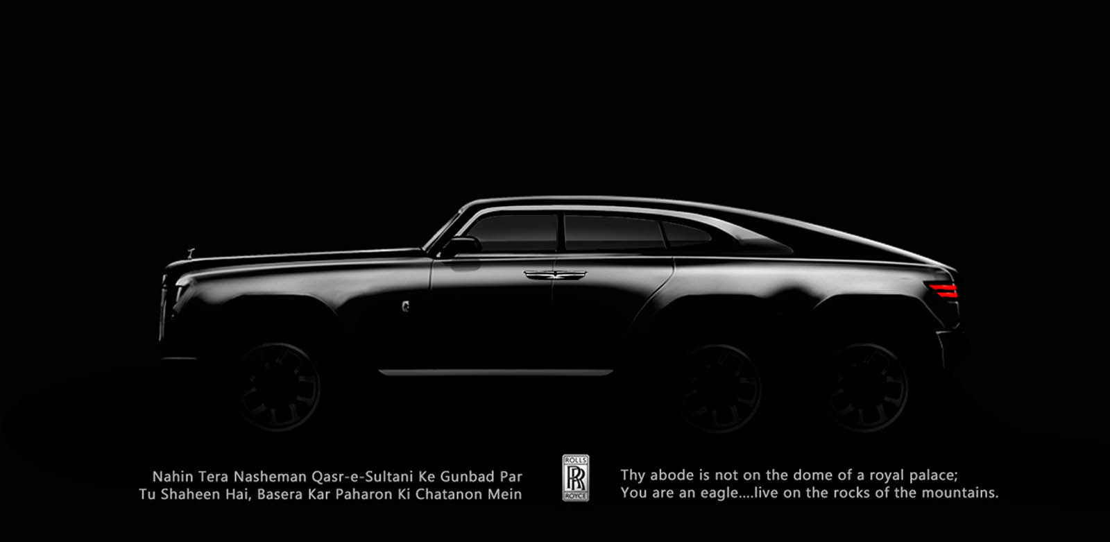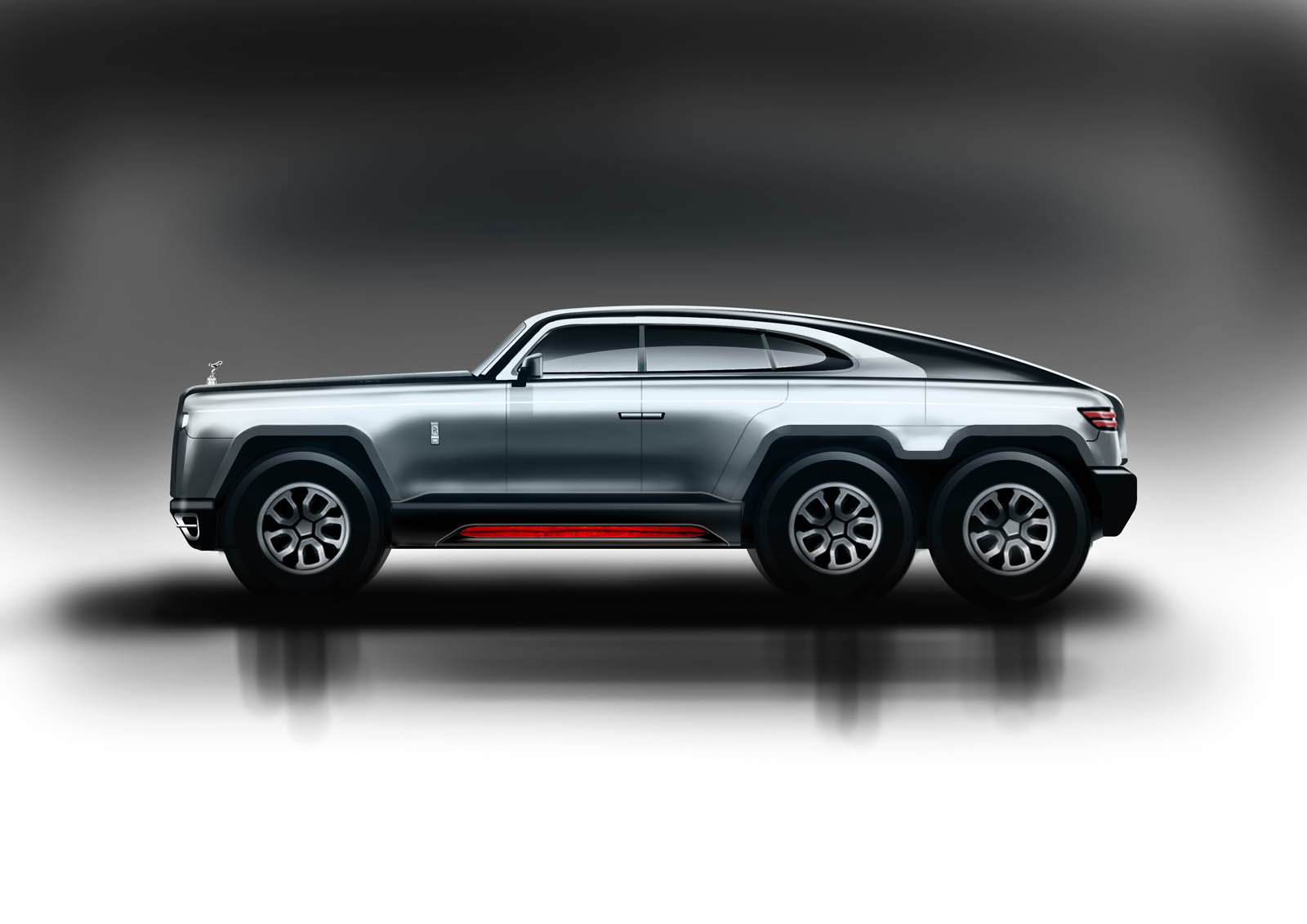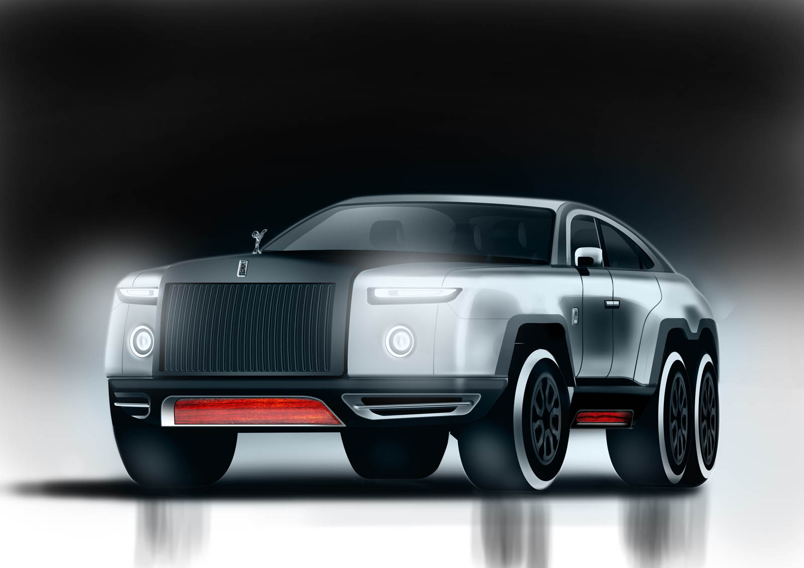 The vision of a designer from India who goes only by the handle Vivek, this concept envisions an extreme Rolls-Royce off-roader with three axles.