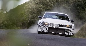 Motivation is provided by a turbocharged 1.6-liter four-cylinder engine which produces 272 PS (200 kW) and 400 Nm (295 lb-ft) of torque. It is connected to a five-speed sequential racing transmission that sends power to permanent four-wheel drive system. This enables the 1,320 kg (2,910 lbs) rally car to rocket from 0-100 km/h (0-62 mph) in just 4.1 seconds.