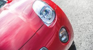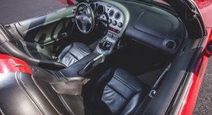 Along the way, the 2.4-liter inline-four was joined by a more potent 2.0-liter turbo, and the roadster was supplemented by a targa-topped coupe. The example you see here was from among the first made, a 2006 model with the open top, in red over black, with the naturally aspirated engine – and just 1,900 miles on the odometer, making it a potential collector’s item.