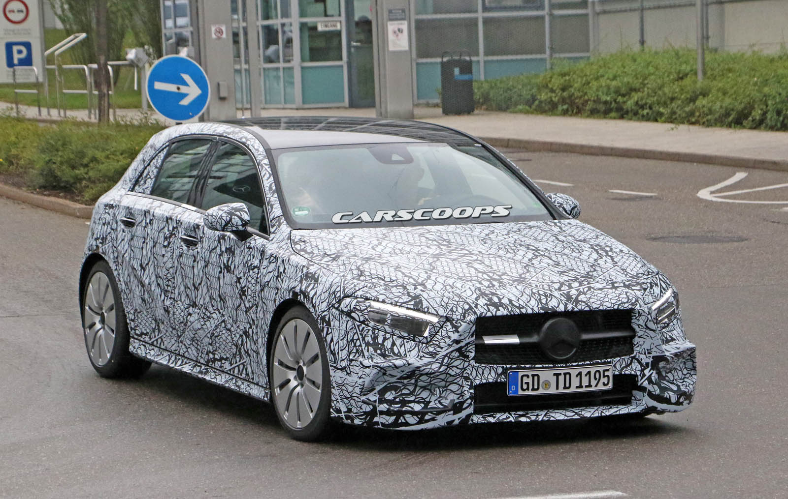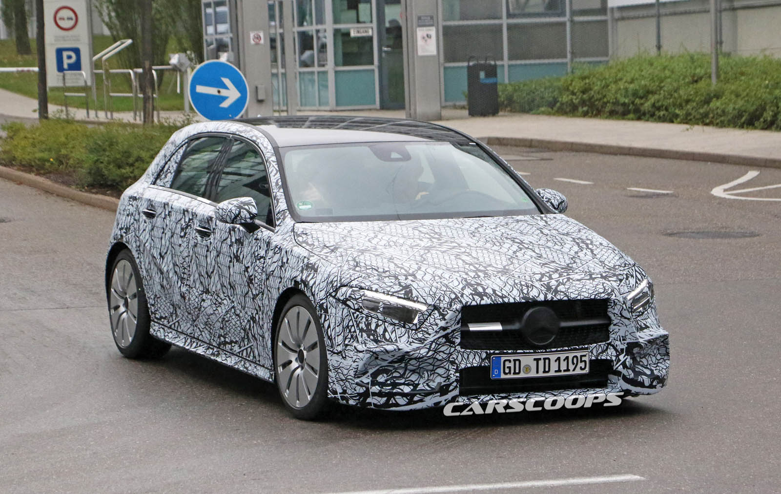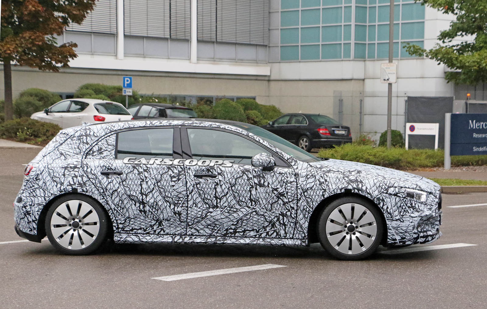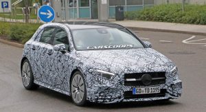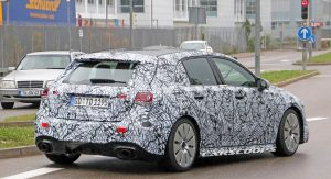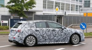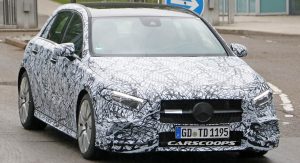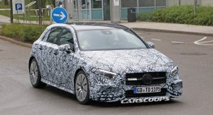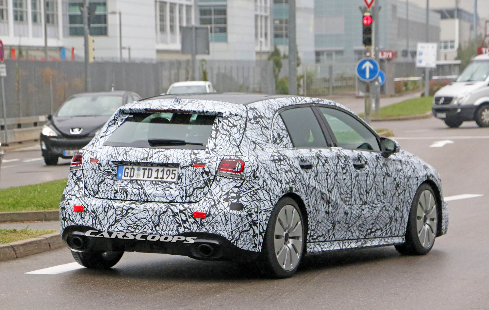 While the new A45 will go up against the Audi RS3, there’ll be an A35 version as well – spotted here while undergoing testing at the company’s headquarters in Sindelfingen, Germany – to target the S3.