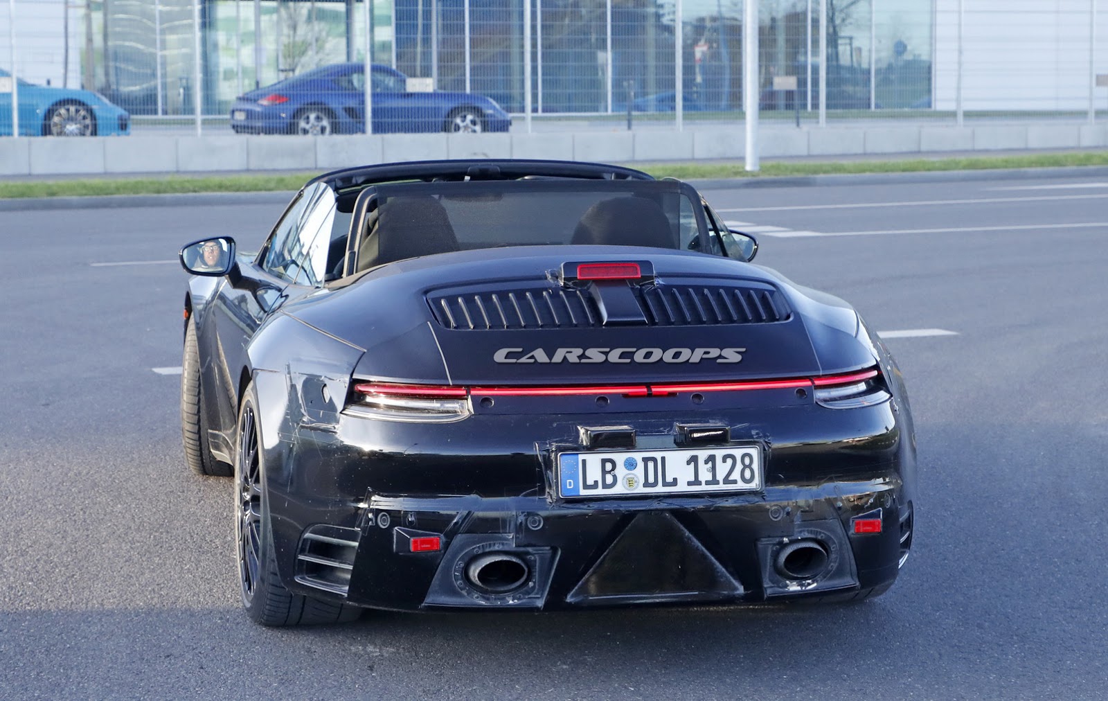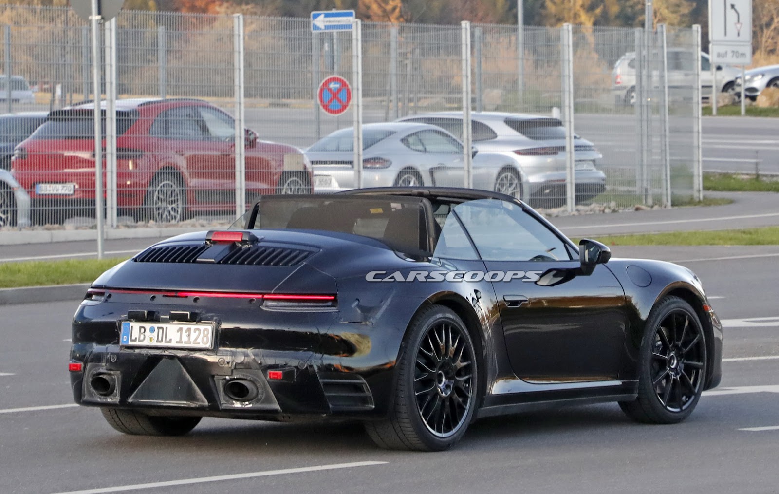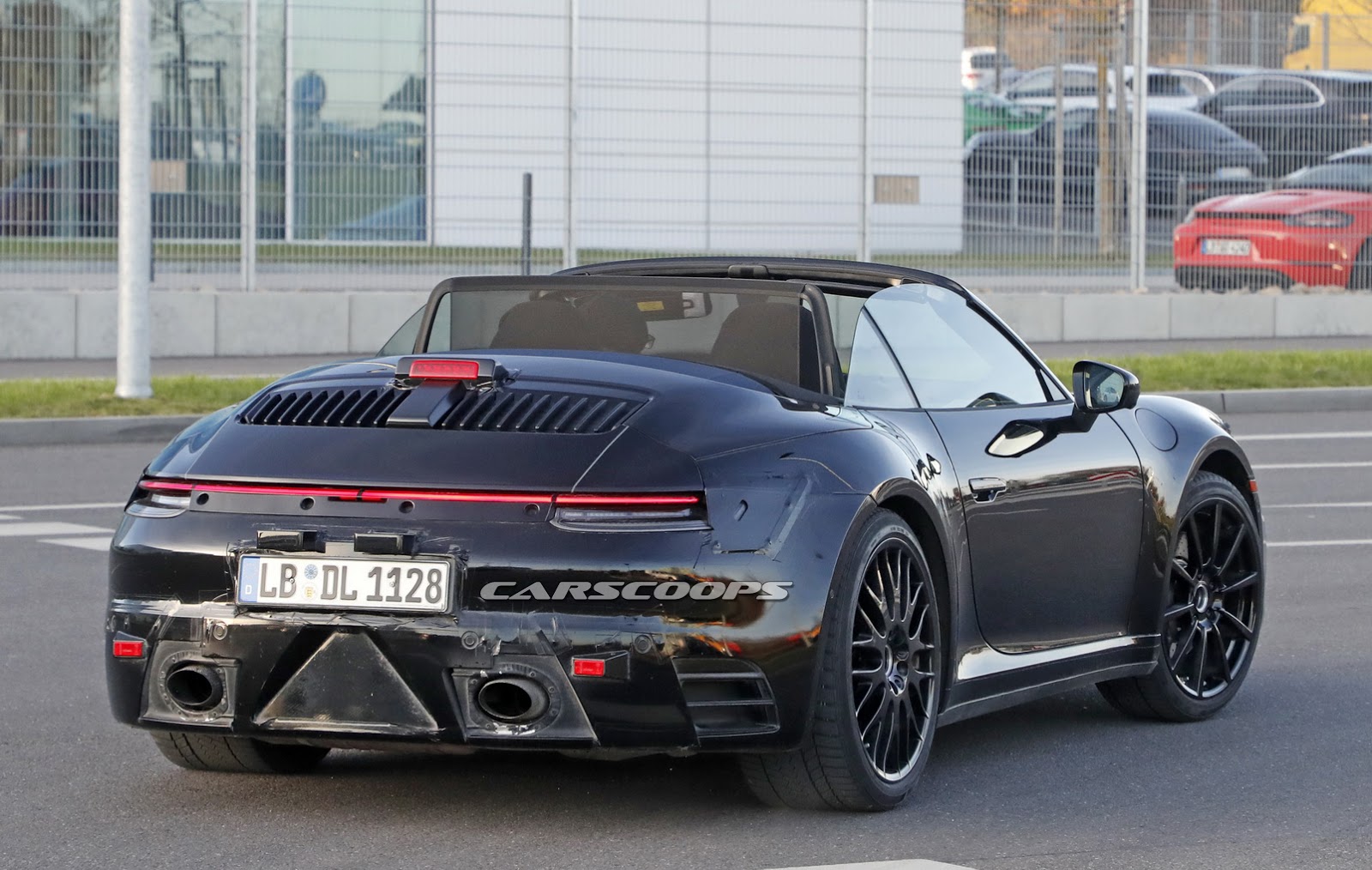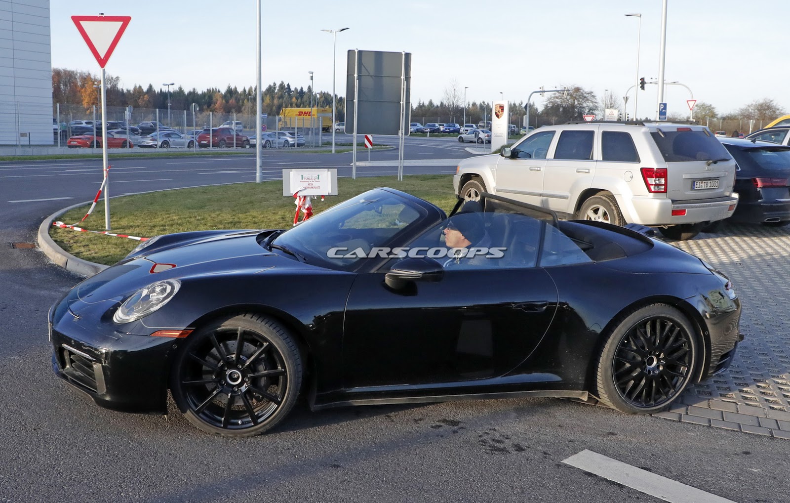 While Porsche’s next-gen 911 Cabriolet might be high on body cladding, this marks the first time we’ve gotten to see it with its top down.