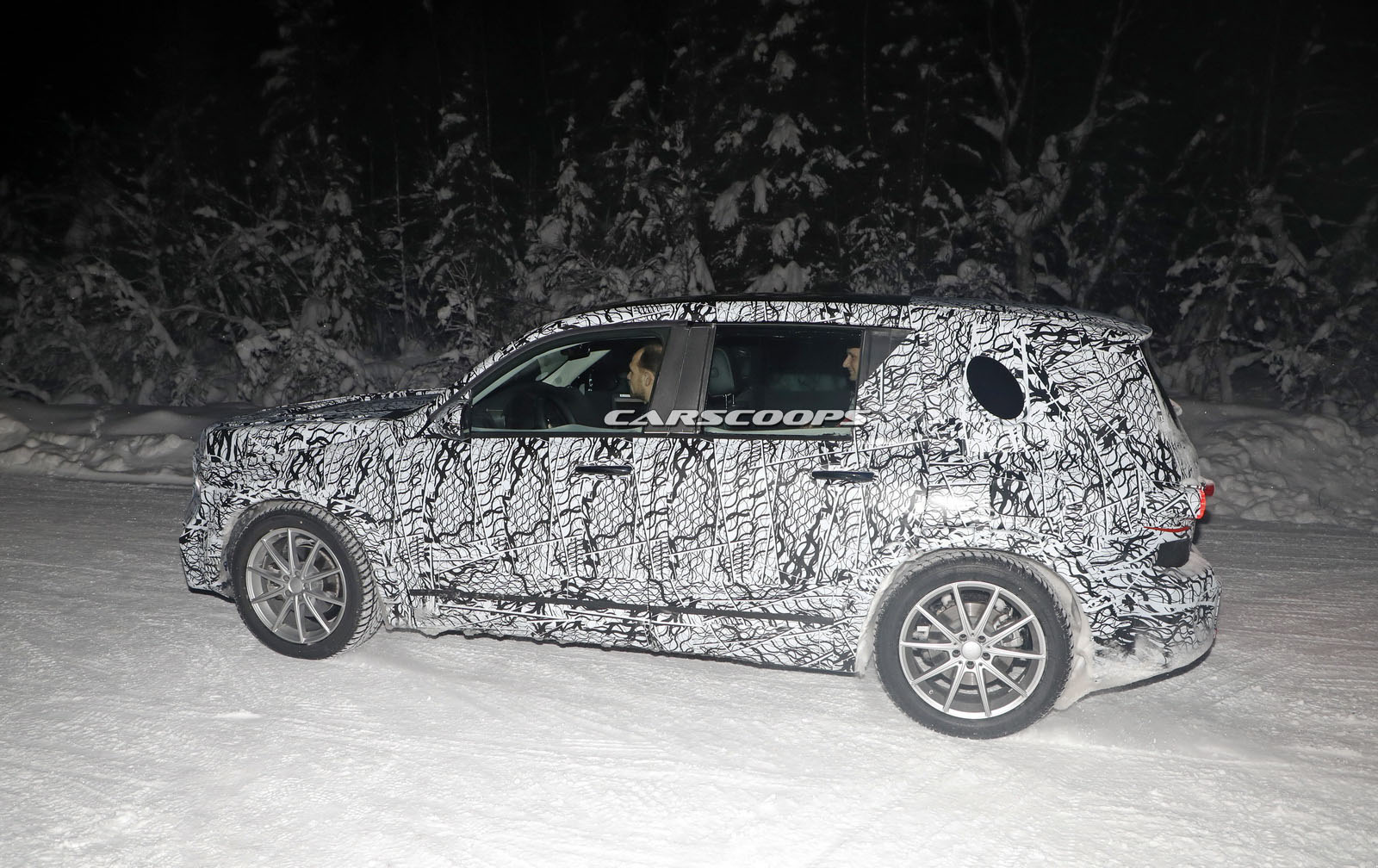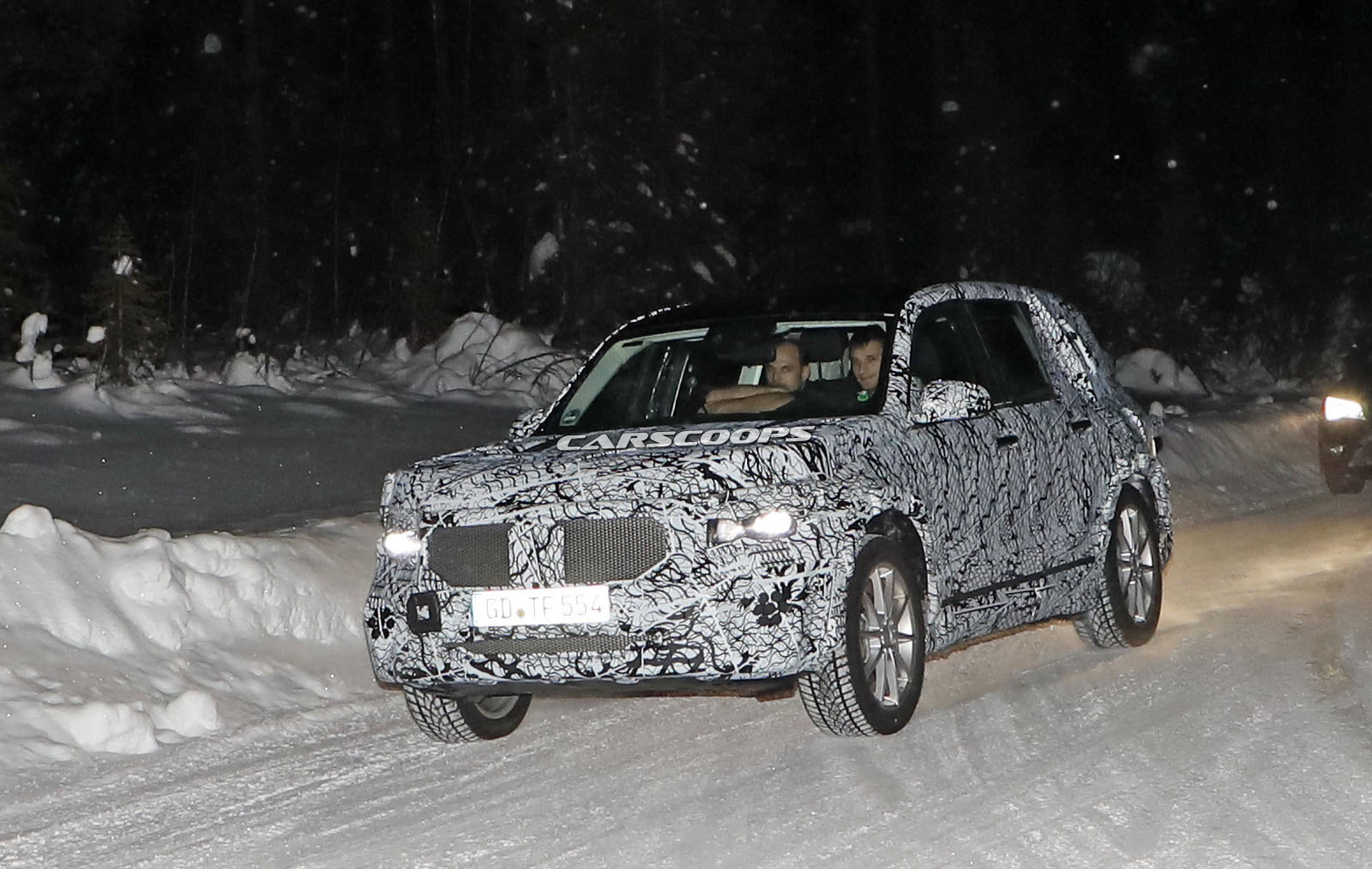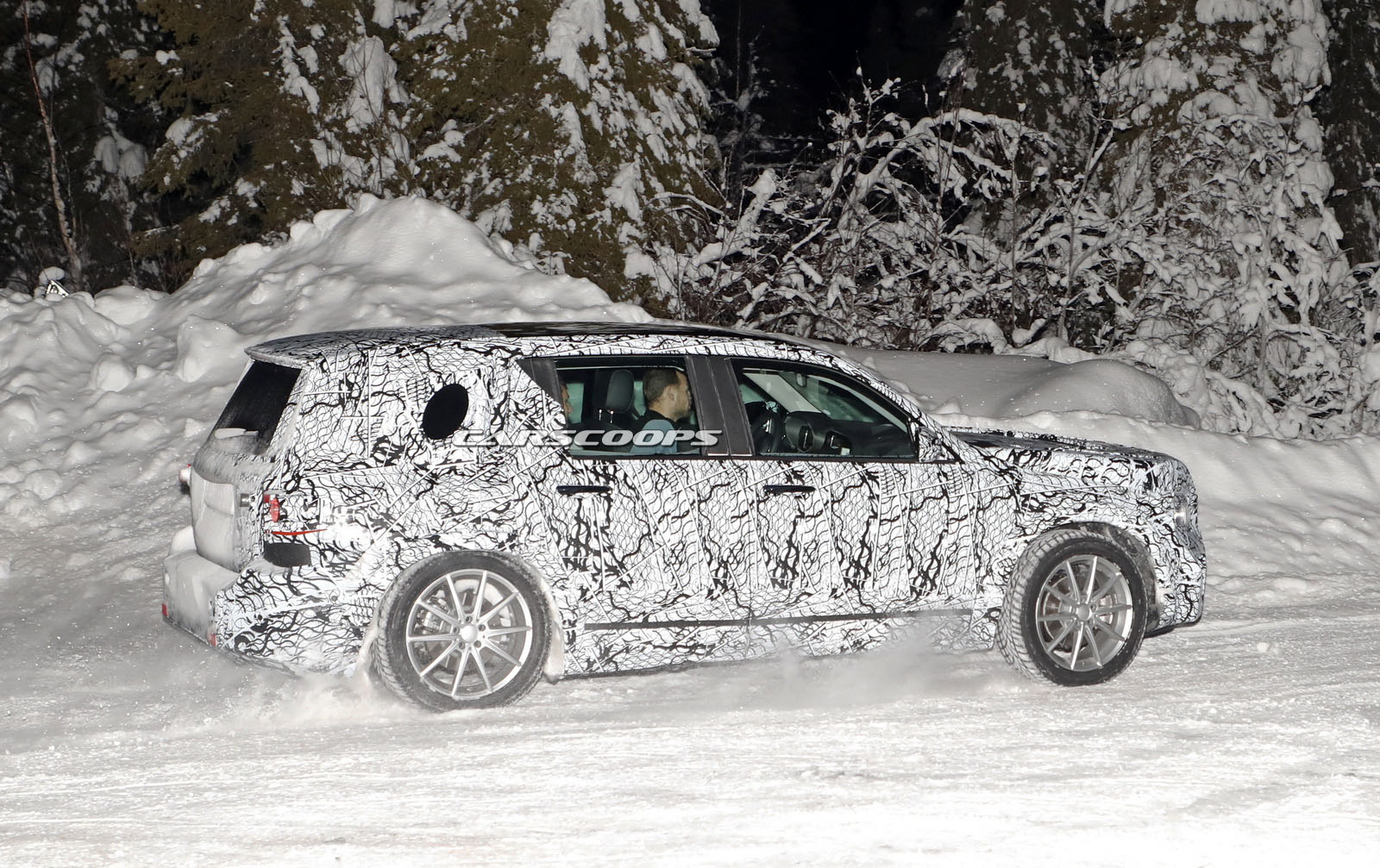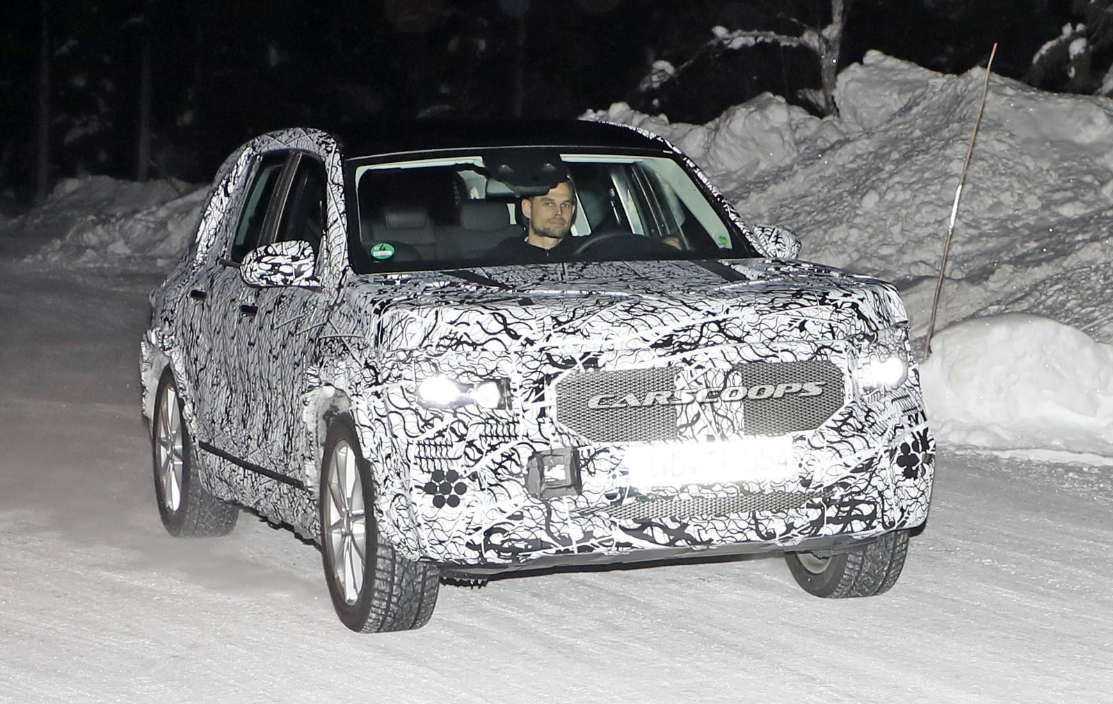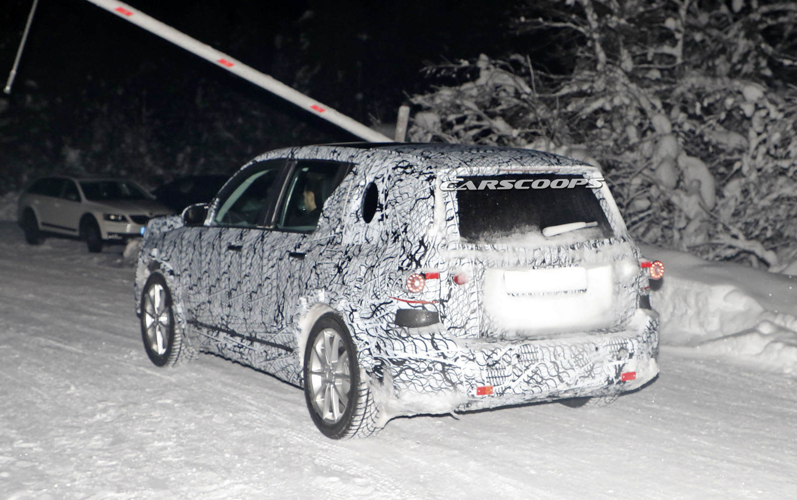 The test car was spotted undertaking some cold-weather testing, wearing a heavy camouflage that includes not only the usual swirly wrap, but also fake body extensions on areas like the bonnet and the rear roof section in a bid to keep its true shape under …wraps.