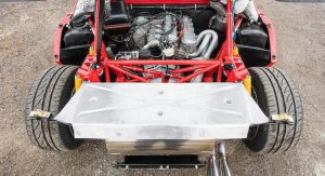 Power comes from a supercharged 2.0-liter four-cylinder that sits in the middle of the chassis and is paired to a five-speed manual gearbox.