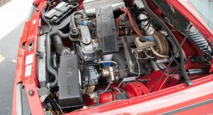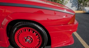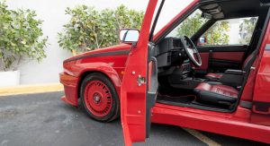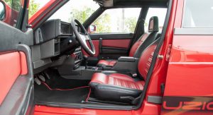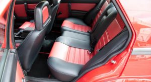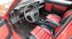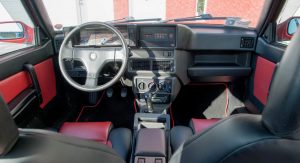 The most obvious visual changes of the Turbo Evoluzione is, of course, the fiberglass bodykit, which includes new fenders, bumpers and side sills, along with matching red 15-inch alloy wheels and that wonderfully ‘80s black decals.