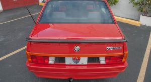 The Alfa Romeo 75 -or Milano, depending on which side of the Atlantic you are- was the last mass-produced rear-driven model the company made before giving us the Giulia. What you see in the pictures is the rarest version of the 75 family, the Turbo Evoluzione, which was a limited run.