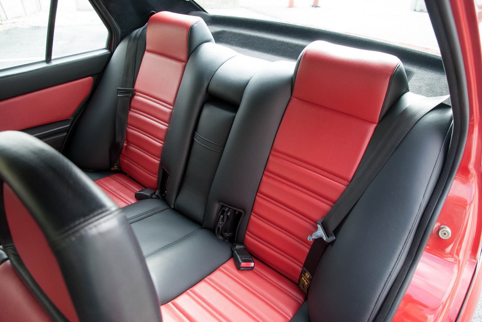 The most obvious visual changes of the Turbo Evoluzione is, of course, the fiberglass bodykit, which includes new fenders, bumpers and side sills, along with matching red 15-inch alloy wheels and that wonderfully ‘80s black decals.