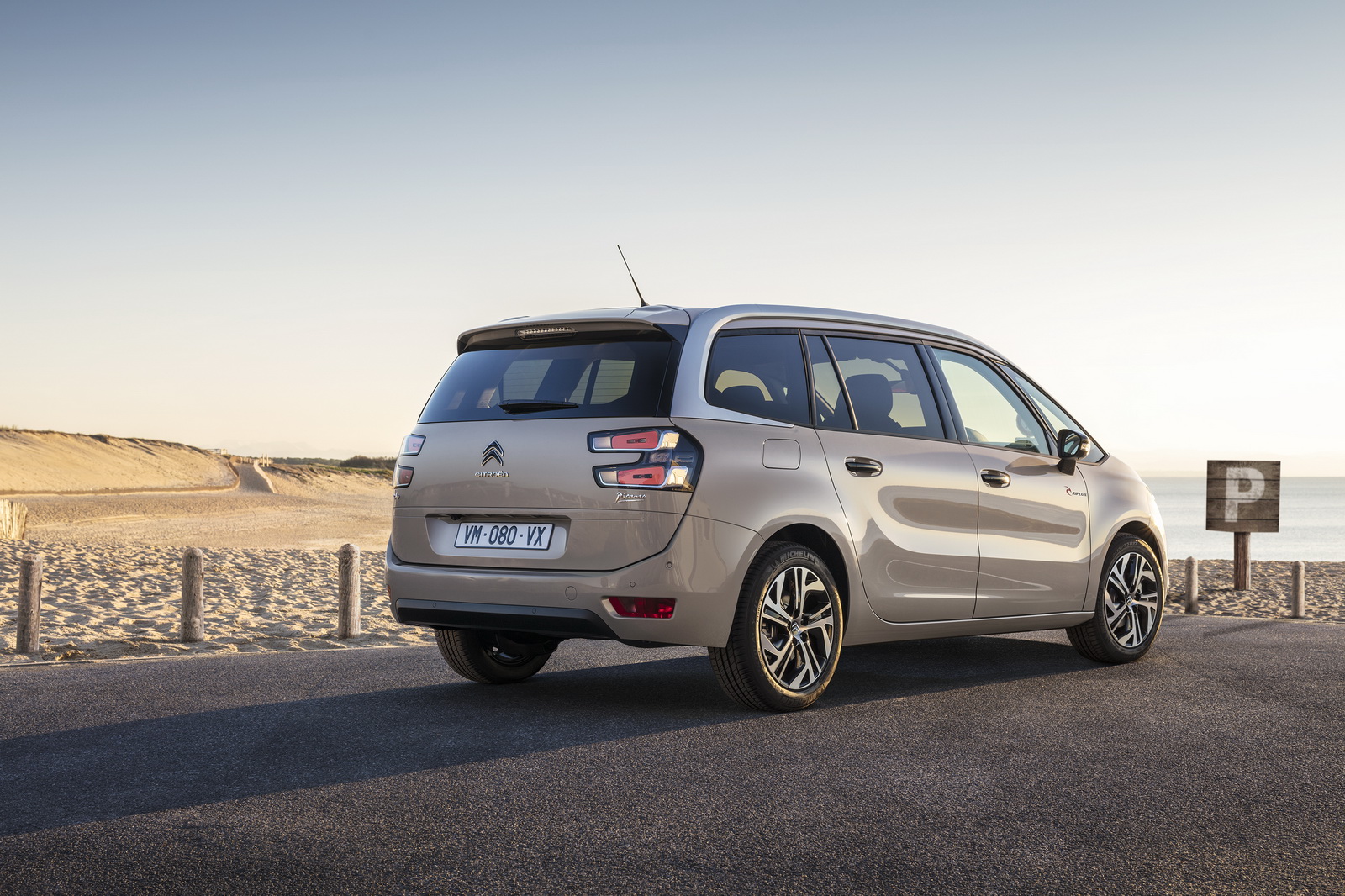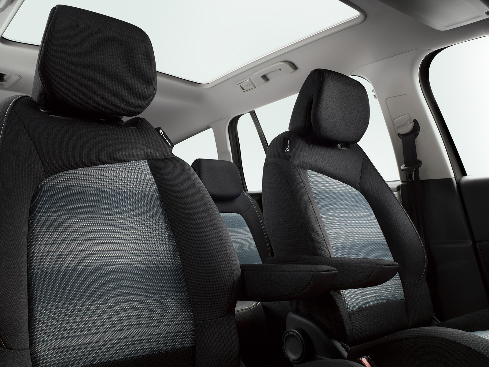 The interior is upgraded with sliding seats on the second row for the C4 Picasso, special Stripe Grey cloth seats with the Rip Curl logo, a Dune Beige finish on the dashboard and door panels, white gold with laser etching door handles, as well as special floor mats.