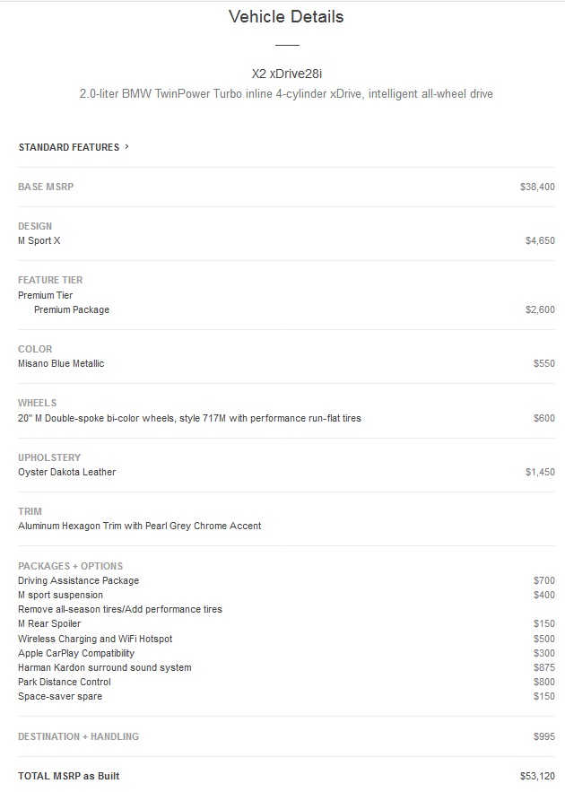 Play with the online configurator, available here, for a few minutes like we did, and you’ll eventually see the MSRP of the BMW X2 reaching over $50,000. That’s more than the larger X3 and X4, and it approaches the price of the new X5, which starts from $56,600 in the States.