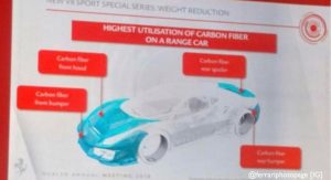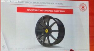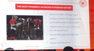 Other information includes a set of carbon fiber wheels that according to the slides will be 40 percent lighter over the standard car’s alloy rims, a rear diffuser that’s inspired from the GTE race car, a new Sideslip Management System which is Ferrari’s advanced traction and stability control system, an “extremely direct” steering ratio and a new Race gearshift strategy.