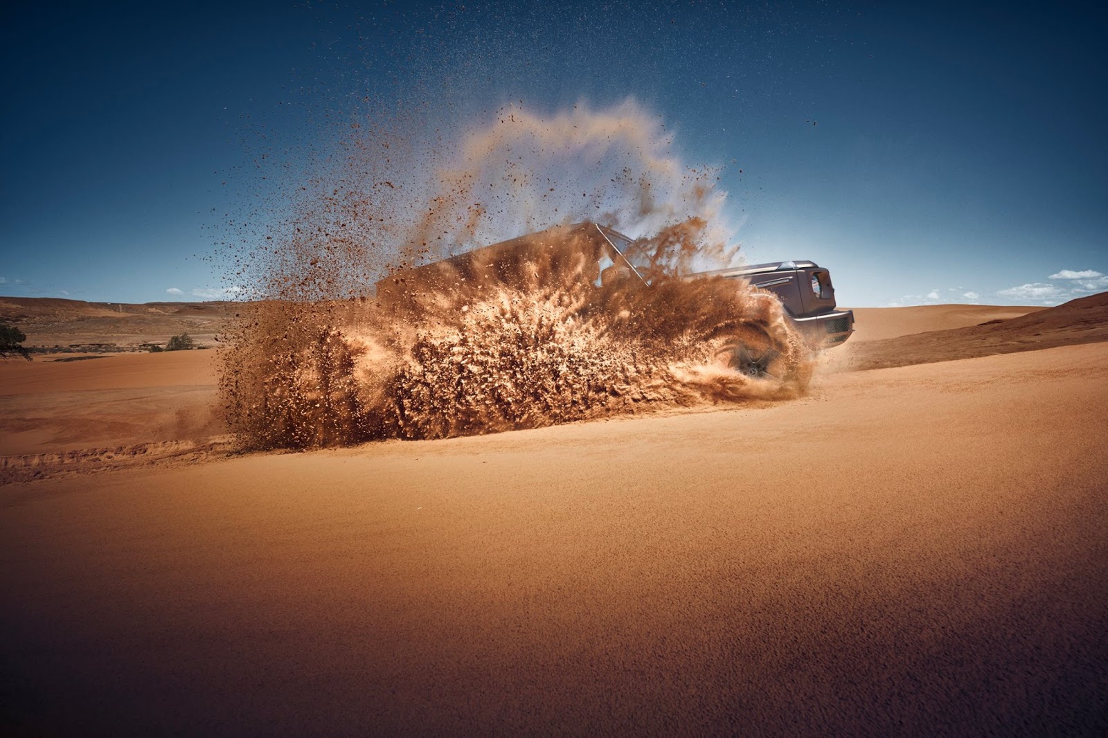 Like the previous teaser, which showed the G-Class driving through snow, this image also focuses on the vehicle’s off-road prowess, depicting the G-Class speeding through sand dunes with ease. The image also offers a small glimpse of the revised front end of the latest-generation model.